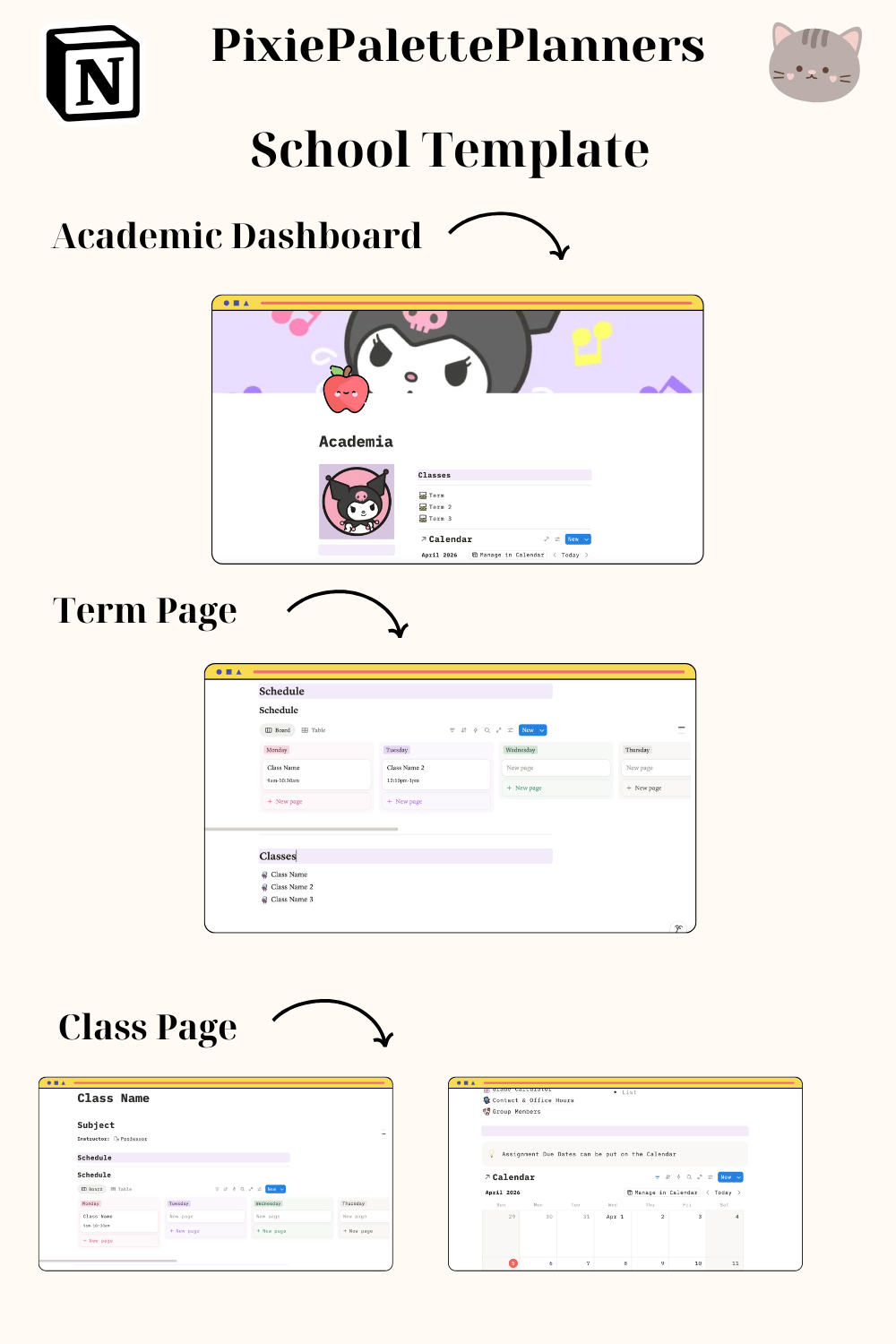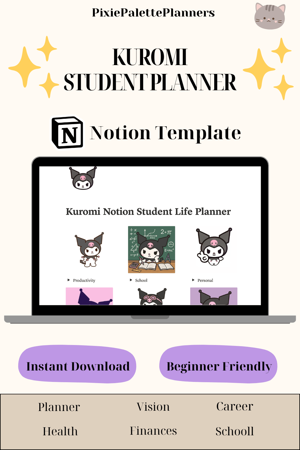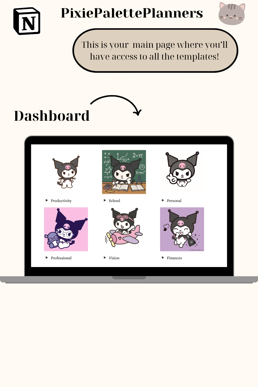 Kuromi Notion Template | Dark Aesthetic Academic Planner, Student Dashboard, Kawaii Sanrio Planner, College Planner, Assignment Tracker, Notion Digital Planner