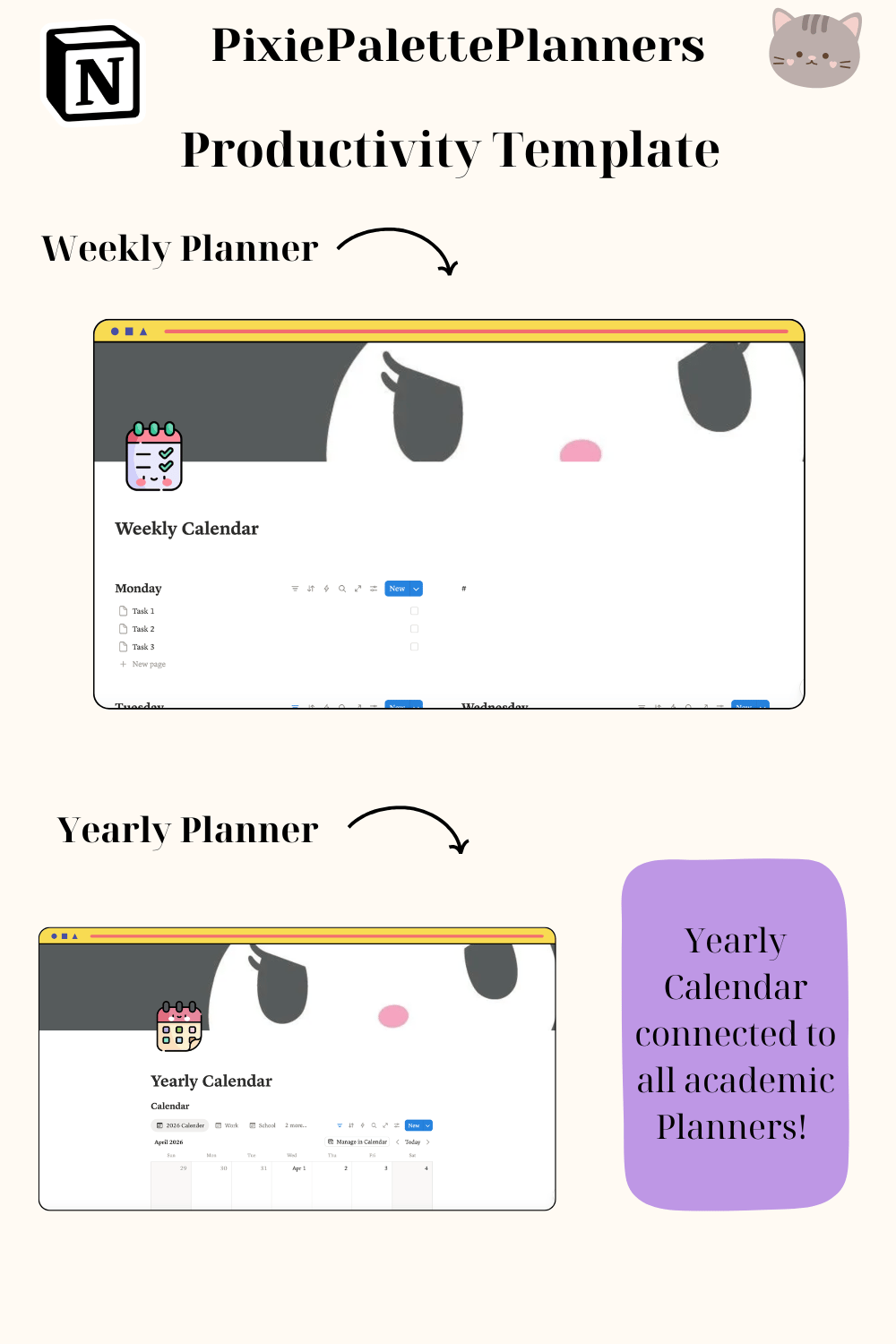 - Weekly Planner: Stay organized with task lists, priorities, and deadlines.