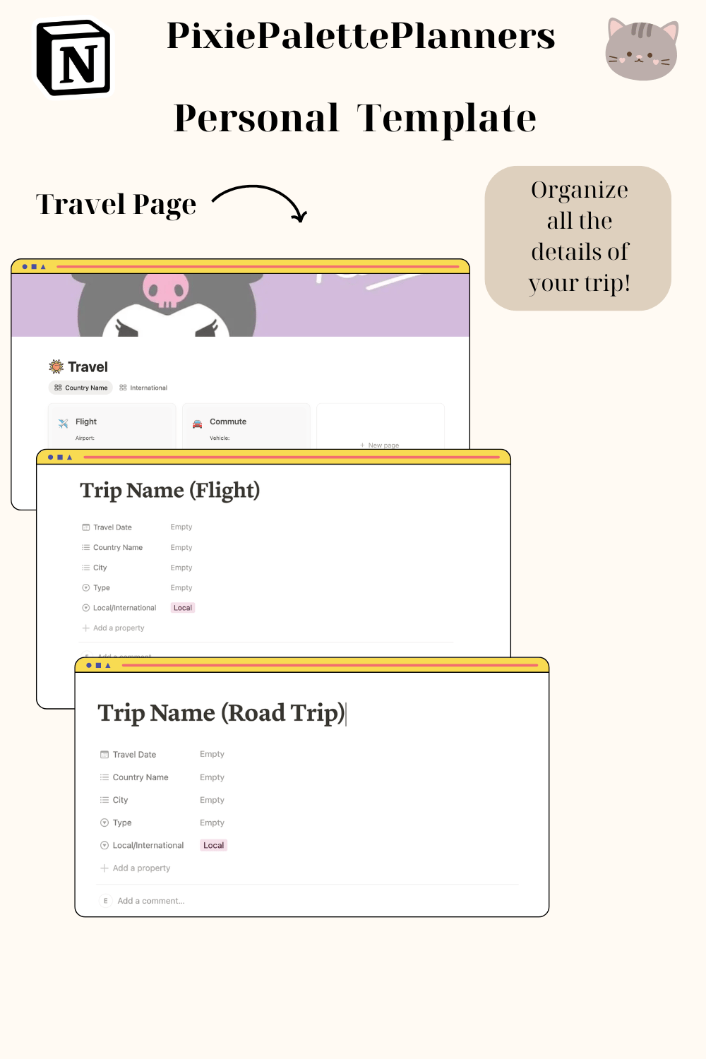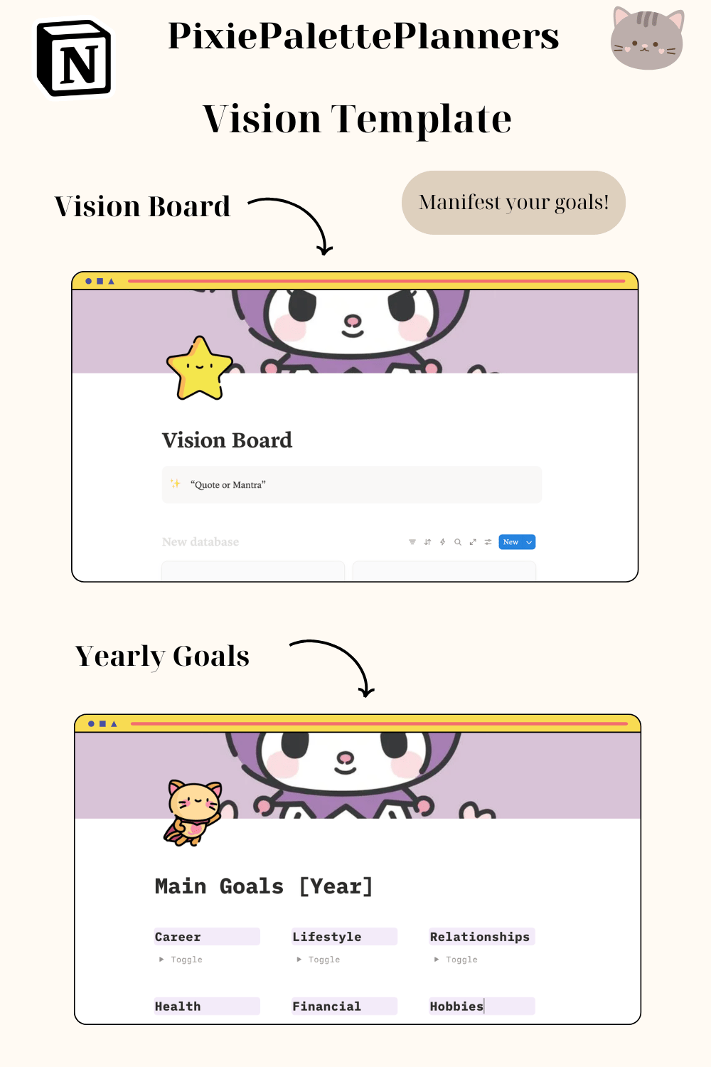 Most kawaii digital planners give you one or two pages and call it a day. This Kuromi academic planner is different — it's a complete dark aesthetic life operating system built inside Notion. Every category talks to the next. Your goals feed your career plan. Your budget informs your travel dreams. Your health habits support your academic performance. It's not just a cute Sanrio planner — it's the most powerful Kuromi Notion dashboard 🌙