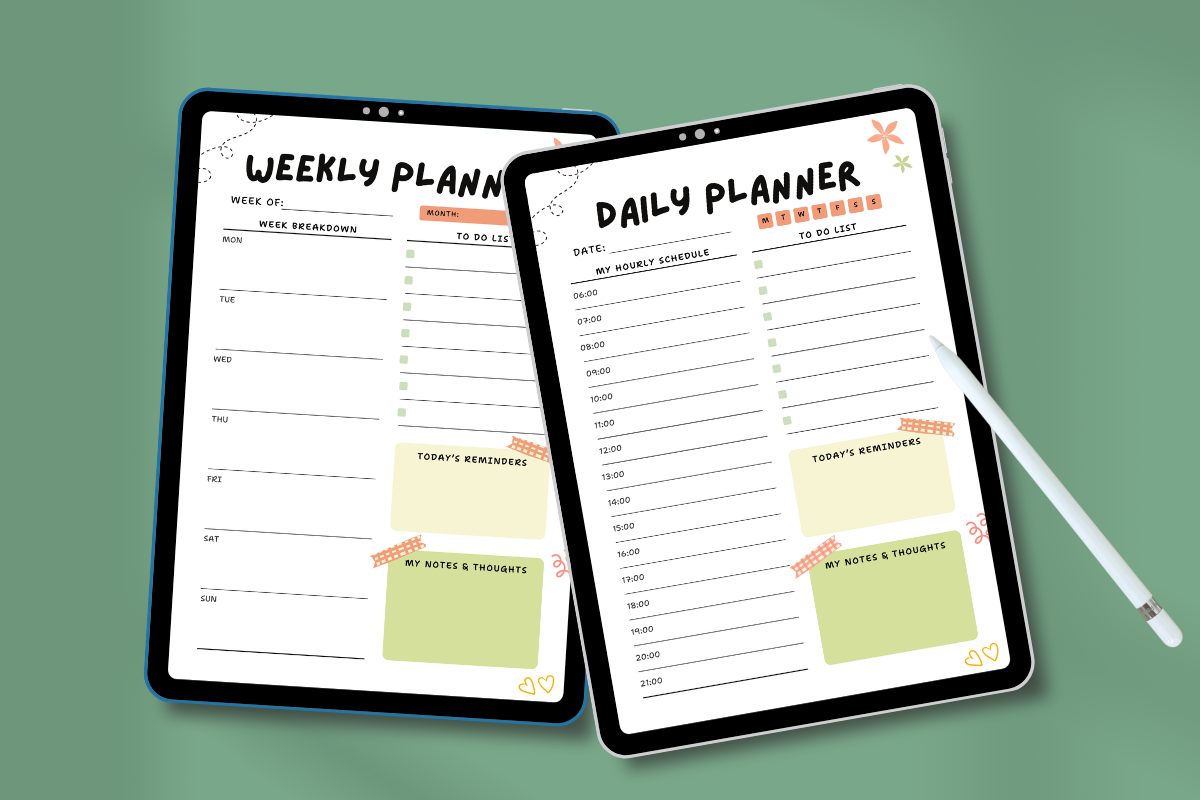 Stay organized with this Cute Daily & Weekly Planner Template, designed in soft pastel colors and a clean aesthetic style. Perfect for students, moms, entrepreneurs, teachers, and anyone who loves pretty planner pages that keep life simple and productive.