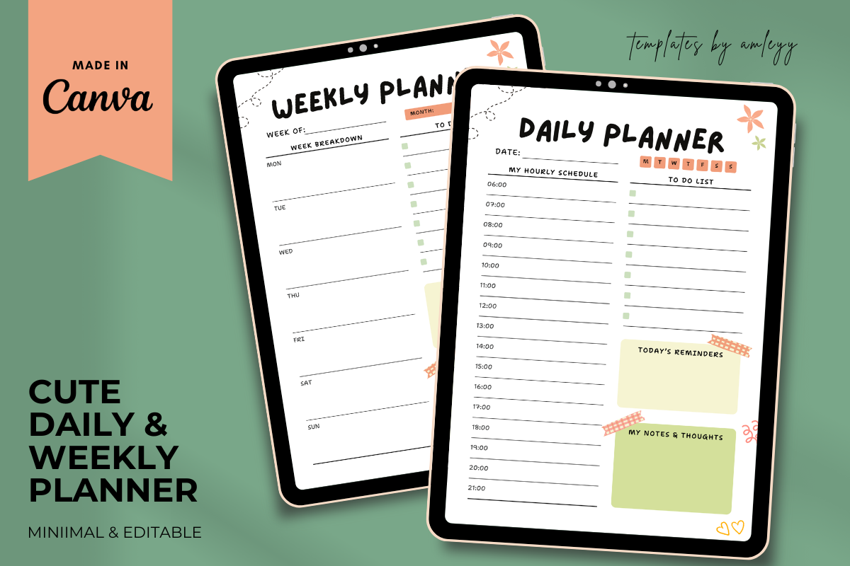 Cute Daily & Weekly Planner Template | Aesthetic Pastel Canva Printable | Editable Productivity Planner Pages