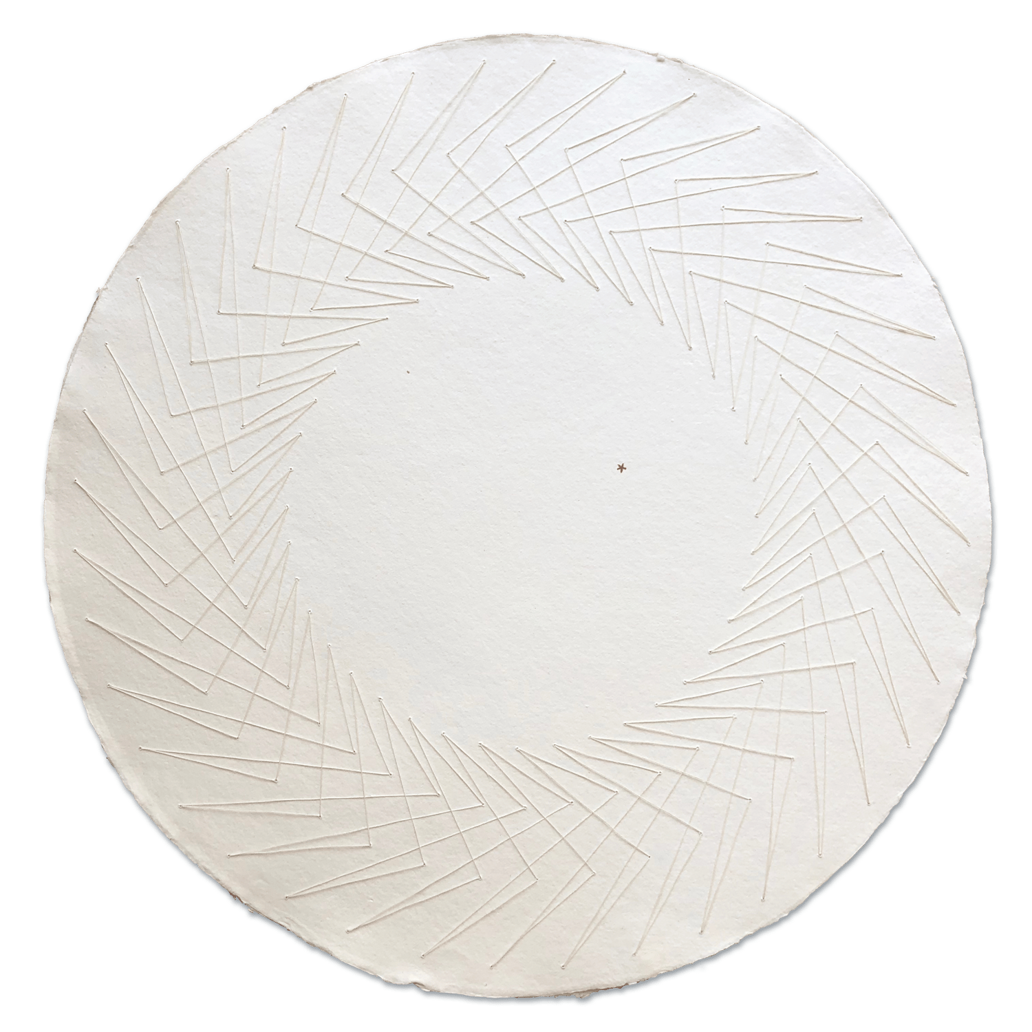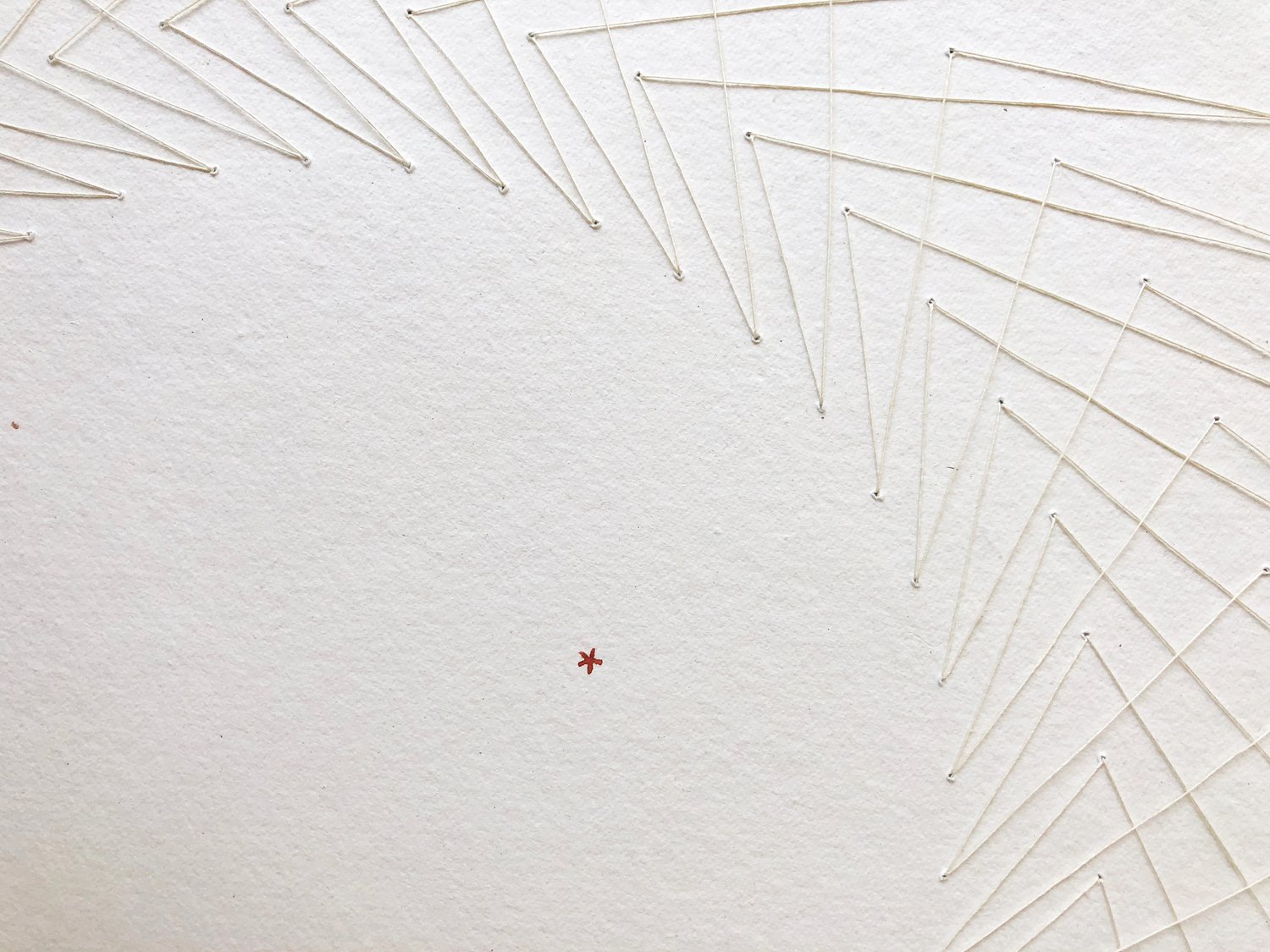 Linen thread and earth pigment on Khadi paper. Ø 55cm.