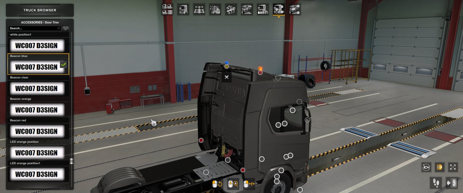 MOD description: Cab spoilers with holes for integrated beacons in spoilers (short high, no full) working only with scania no spoiler mod from this site, dont work alone.