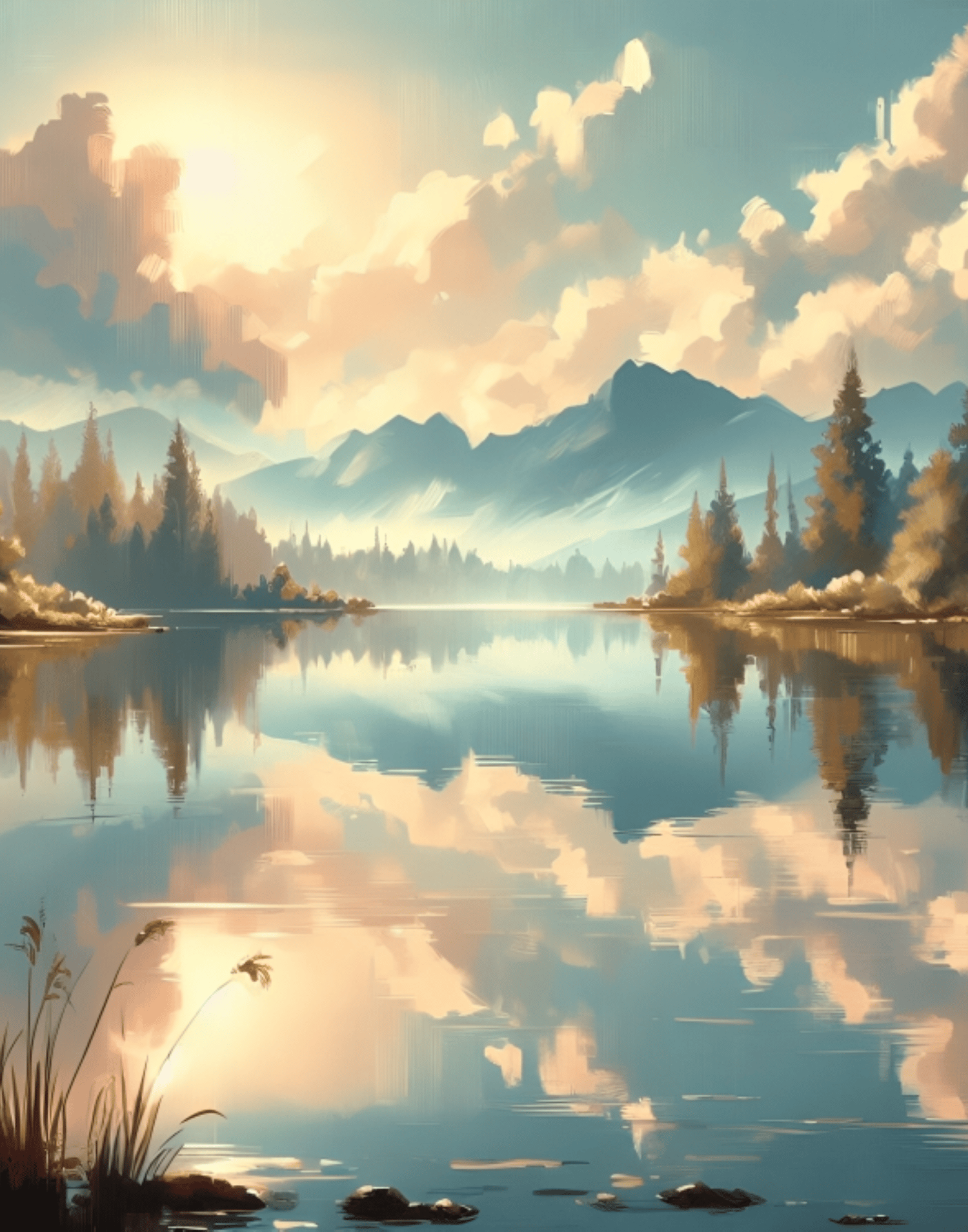 Lake Painting, Serene Nature, Vintage Landscape, Nostalgic Nature, Cool Nature, Rustic natural Landscape, Painting.