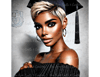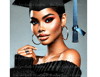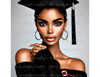 Celebrate achievement with this stunning digital artwork of elegant African American women in a graduation cap, styled with sophistication and grace. Each image is uniquely designed Product Details: