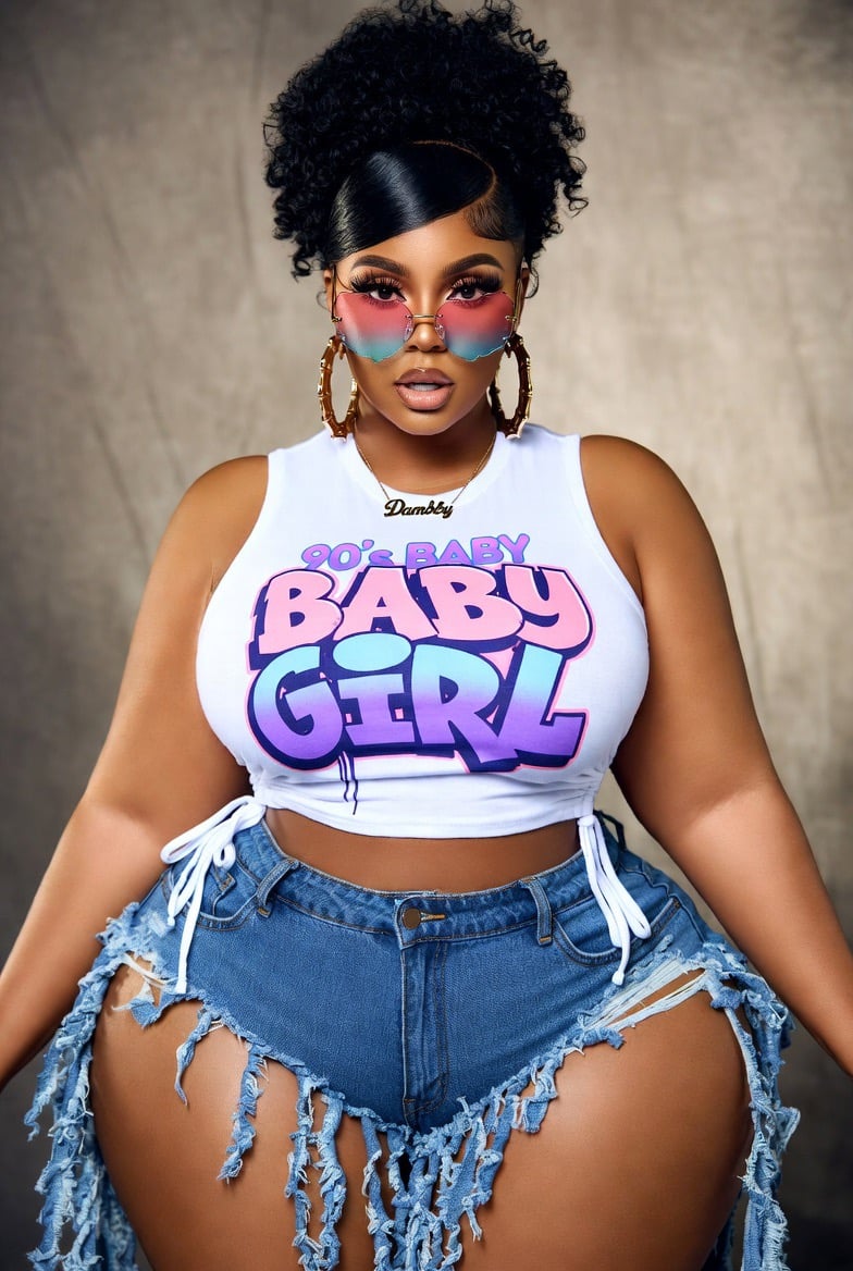 Every prompt features a full-figured, ultra-curvy Black woman styled in a nostalgic yet modern streetwear look, paired with carefully curated poses and visually striking backgrounds. From neon-lit city nights and pastel rooftops to poolside lounges, roller rinks, and editorial studio sets, each scene feels intentional, immersive, and magazine-ready.