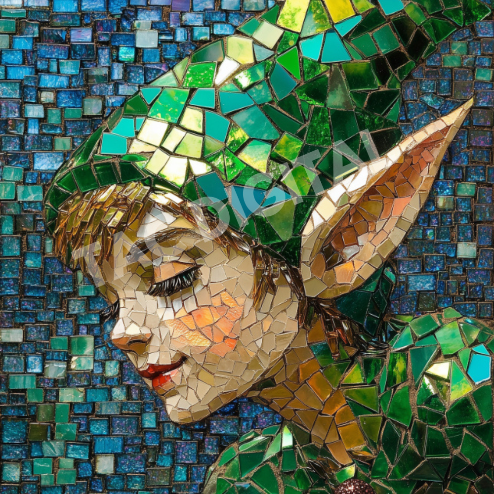Mosaic Elf Collection FCELF-M4 is 3125x3125 at 300 dpi. This Mosaic Holiday graphic is perfect for digital enthusiasts, art collectors, and anyone looking to add something truly special to their space. Whether you're interested in AI-generated illustrations, posters, or printables you'll love this collection.
