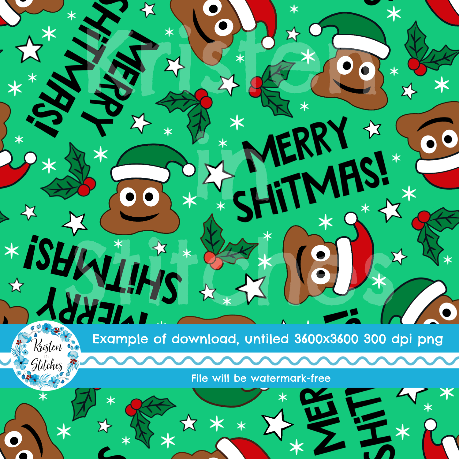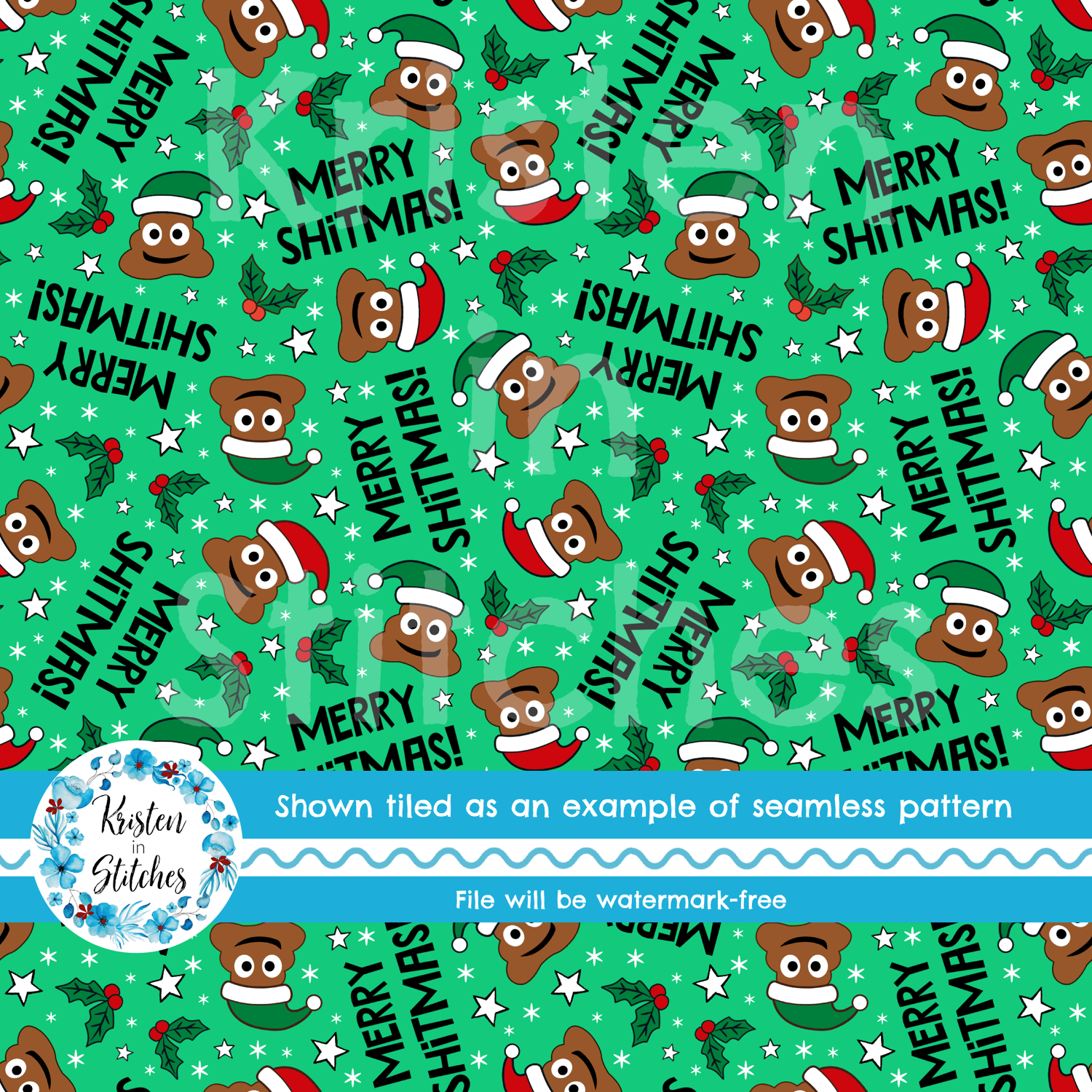 Merry Shitmas! Sarcastic Christmas Poop Emoji Santa Seamless Pattern