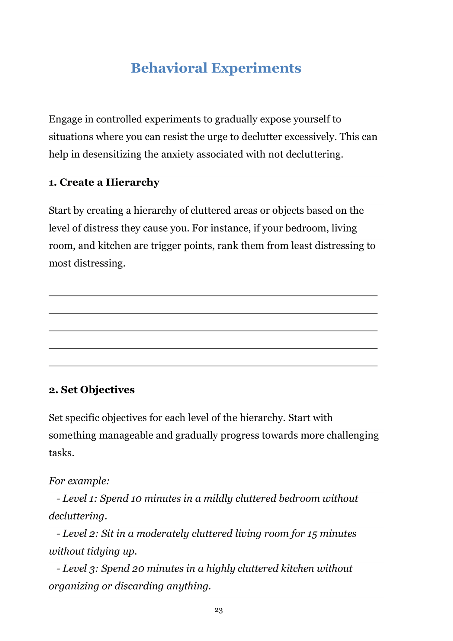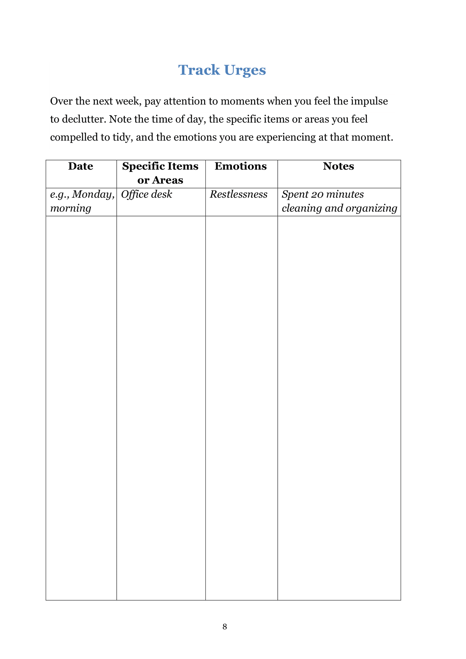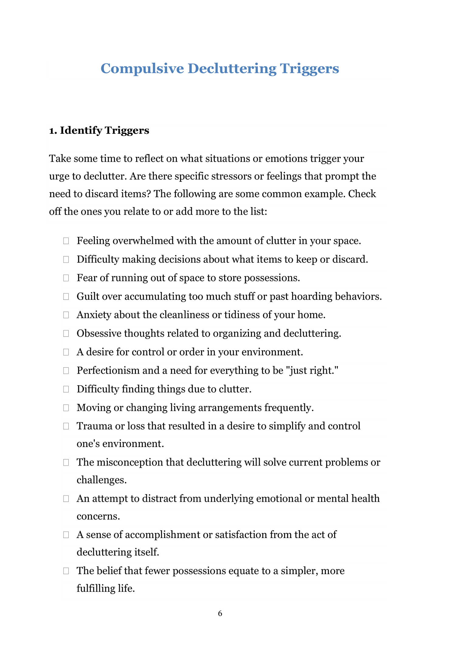 - Identify triggers, emotions, and patterns associated with compulsive decluttering.