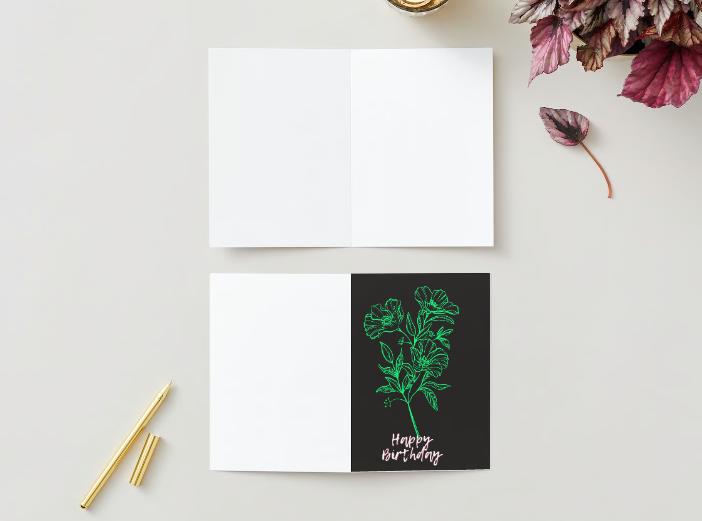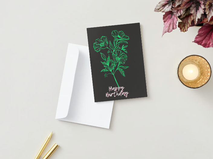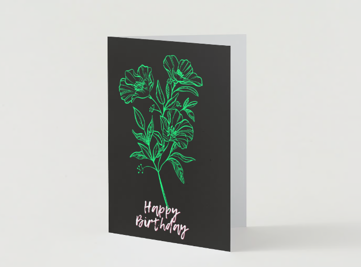 HAPPY BIRTHDAY CARD BLACK - WITH GREEN FLOWERS