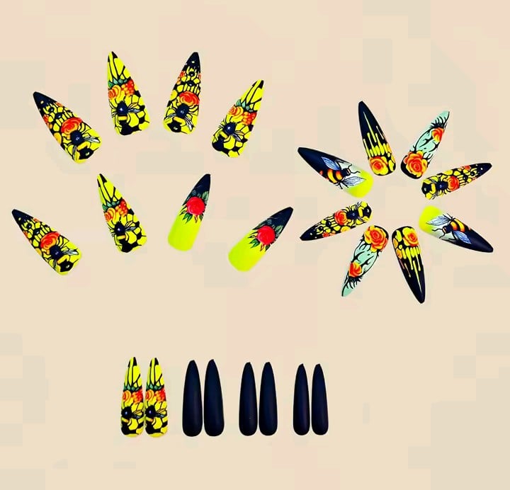 24 pieces of Long Almond shaped nails for new spring and summer. These wearable false nails offer a simple, stylish, and modern look, perfect for everyday wear or special occasions.