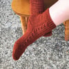 The Bica socks are knit from the toe-up with a German short-row heel. Instructions are written for working the magic loop method but you can substitute with DPNs if you wish. The stitch pattern creates a mock cable effect along the front of the sock, the sole and back of the leg is worked in stockinette. The leg length is easily adjustable.