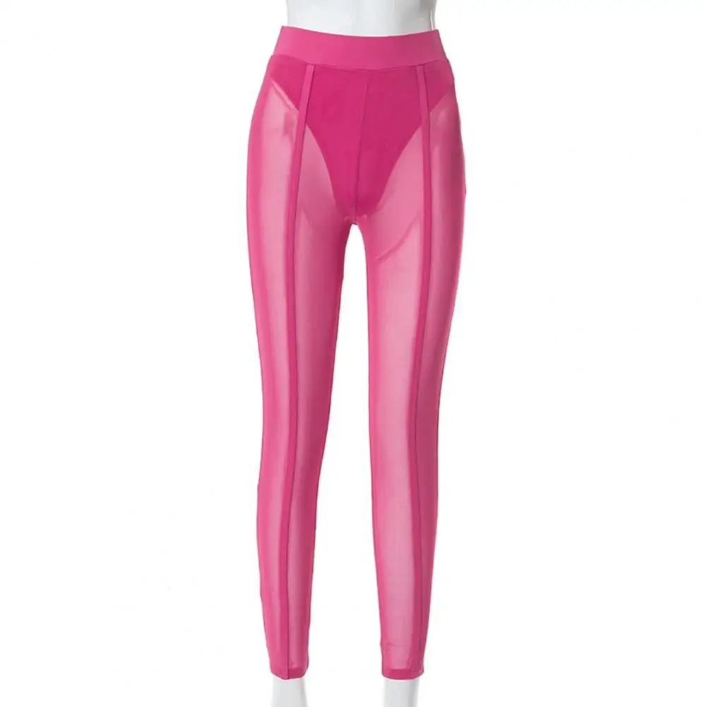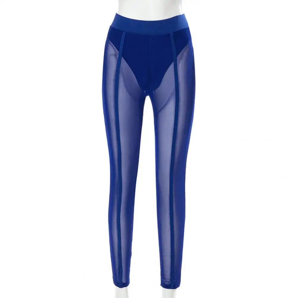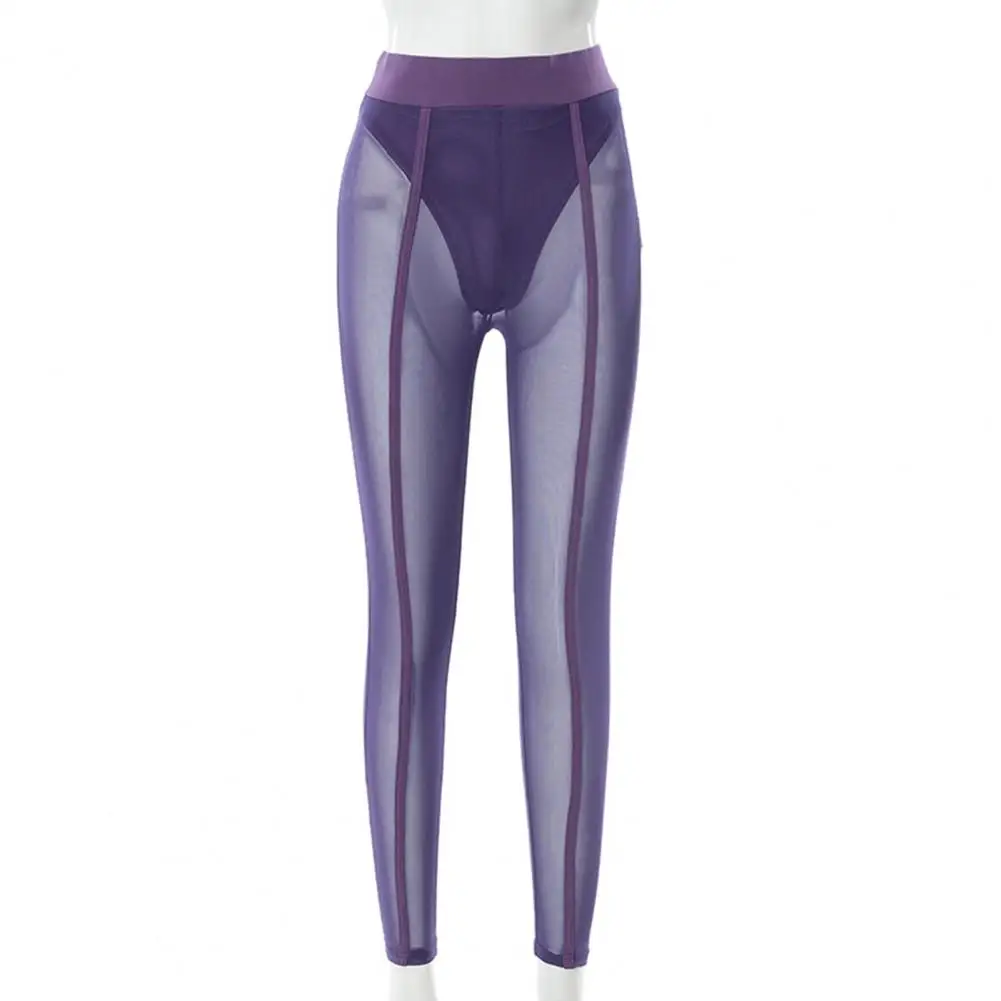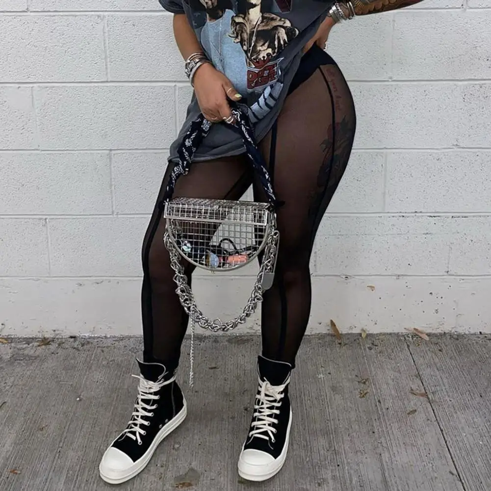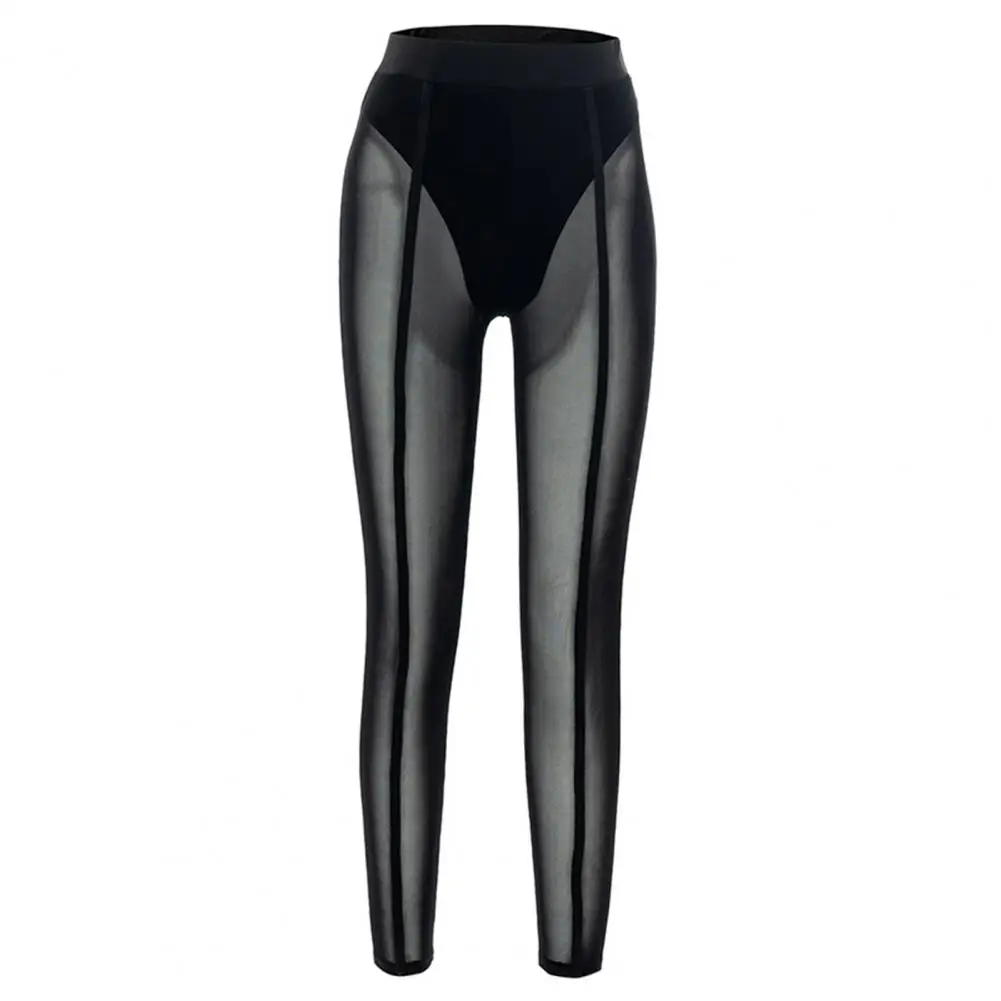 High Waist Slim Fit Elastic Waistband Skinny Leggings Hip Lifting Women Mesh Sheer Skinny Leggings Club Wear