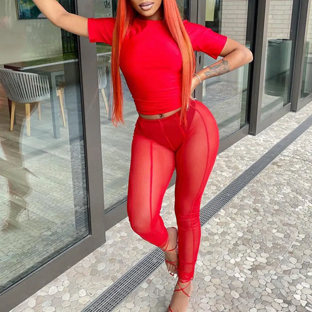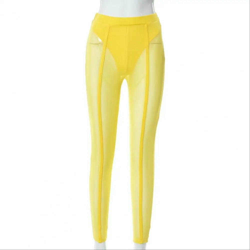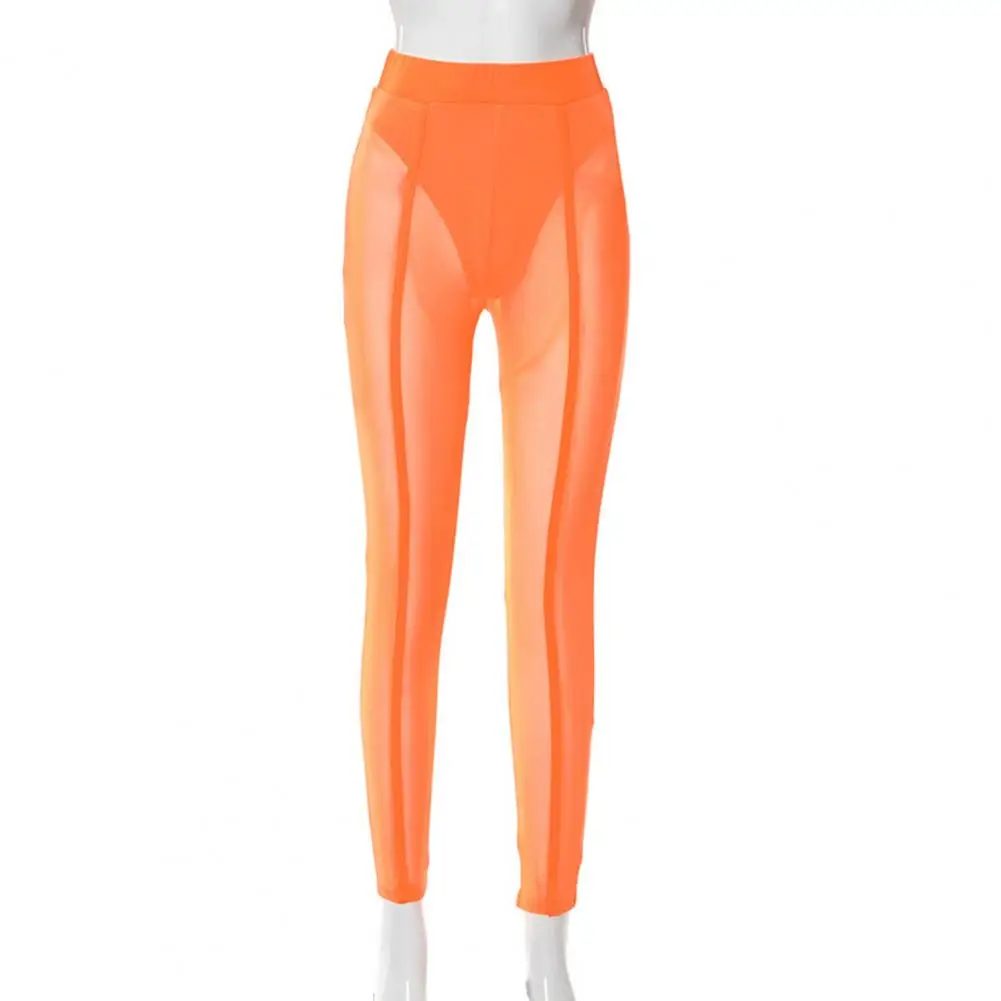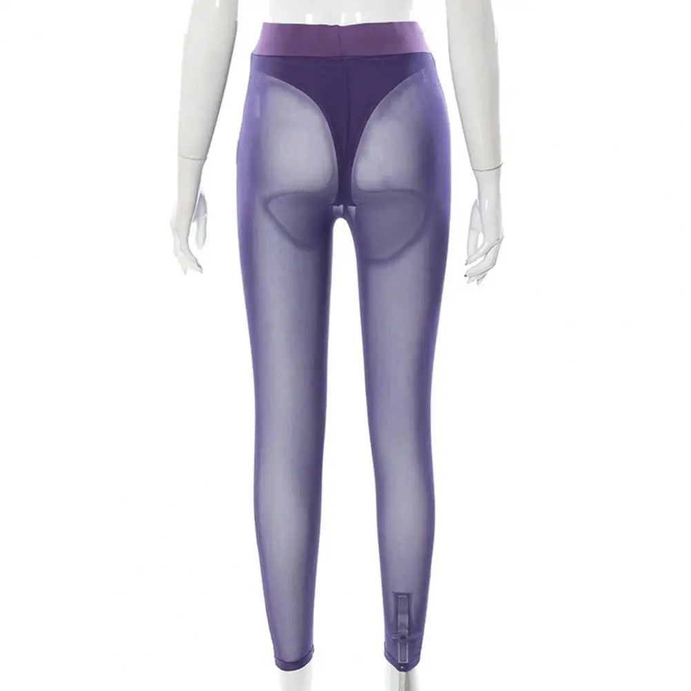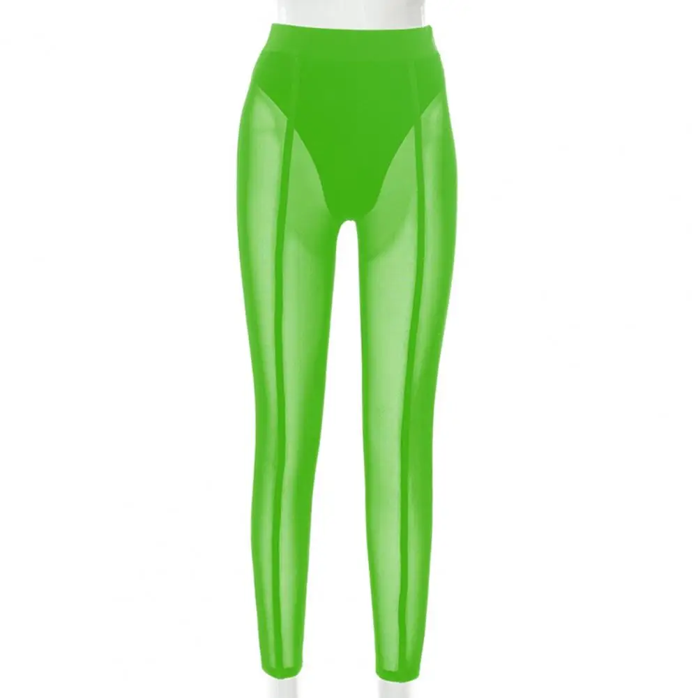 High Waist Slim Fit Elastic Waistband Skinny Leggings Hip Lifting Women Mesh Sheer Skinny Leggings Club Wear