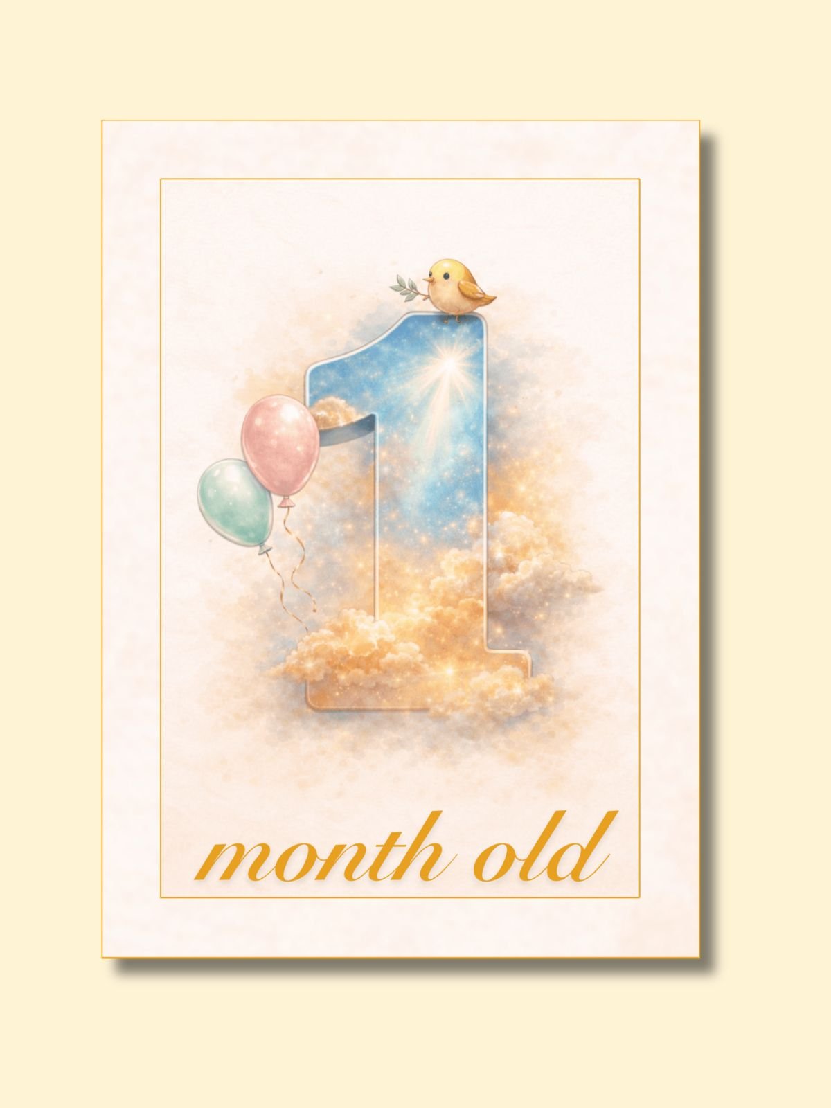 Print a card. Place it next to your baby on a blanket, crib sheet, or soft rug. Snap a photo from above. That's it. The best milestone photos are the ones where your baby is just being themselves — wiggly, sleepy, curious, mid-yawn.