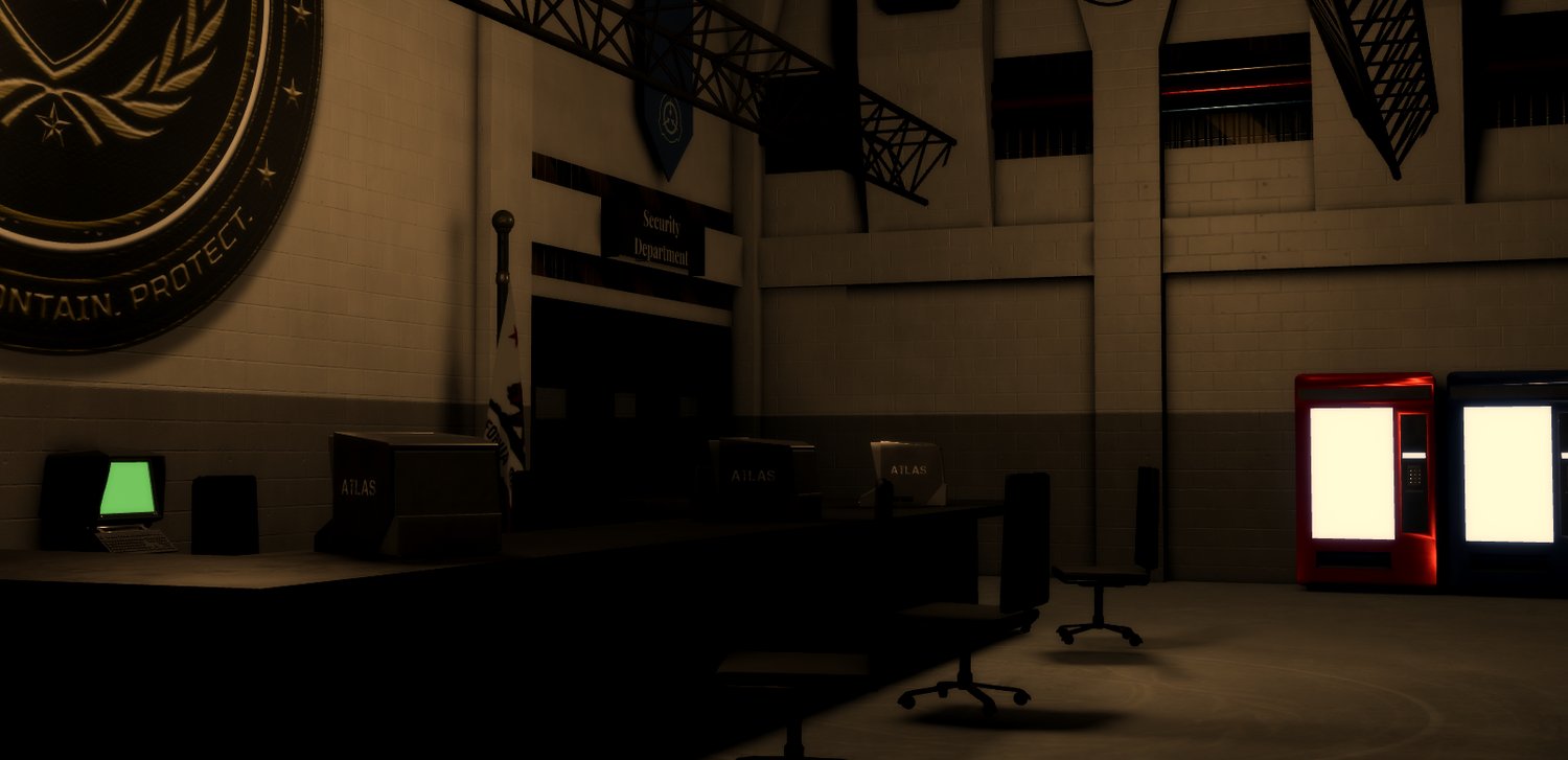 The Aegis Technologies SCPF Security Department Sector is a carefully crafted sector housing a Security Department with a sub-divison of specialised response forces. Coming outfitted with a reception, 2 armouries and a carefully crafted entrance this sector is a compact, useful spawn for your Security Department!