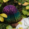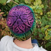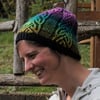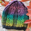 Fīfta, (pronounced feef-ta) is the Old English word for fifth; a very fitting name for this hat. I see many designs that are based on quarters, sixths or eighths, but it is less often that the odd numbers get a look in. So, this hat celebrates the fifth in all its glory. Five plaited brioche columns are separated by five areas of colourful garter stitch. You can also choose between a classic beanie and a more slouchy shape.