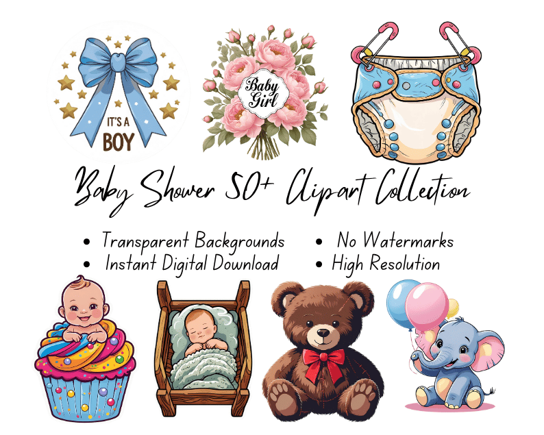 Baby Shower 50+ Clipart Collection | High-Resolution Digital Printables | Instant Download | No Watermark