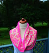The Never Too Much cowl pattern is a charted slip-stitch mosaic pattern consisting of two alternating 13-stitch designs along the circumference and height of the cowl. The pattern is written to be knit in the round and allows for chart modification to add stippling or change design features of the pattern.