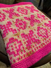 While the pattern is written in one size, this pattern leaves ample room for stitch count and chart height modification to create a finished object that is exclusively yours.