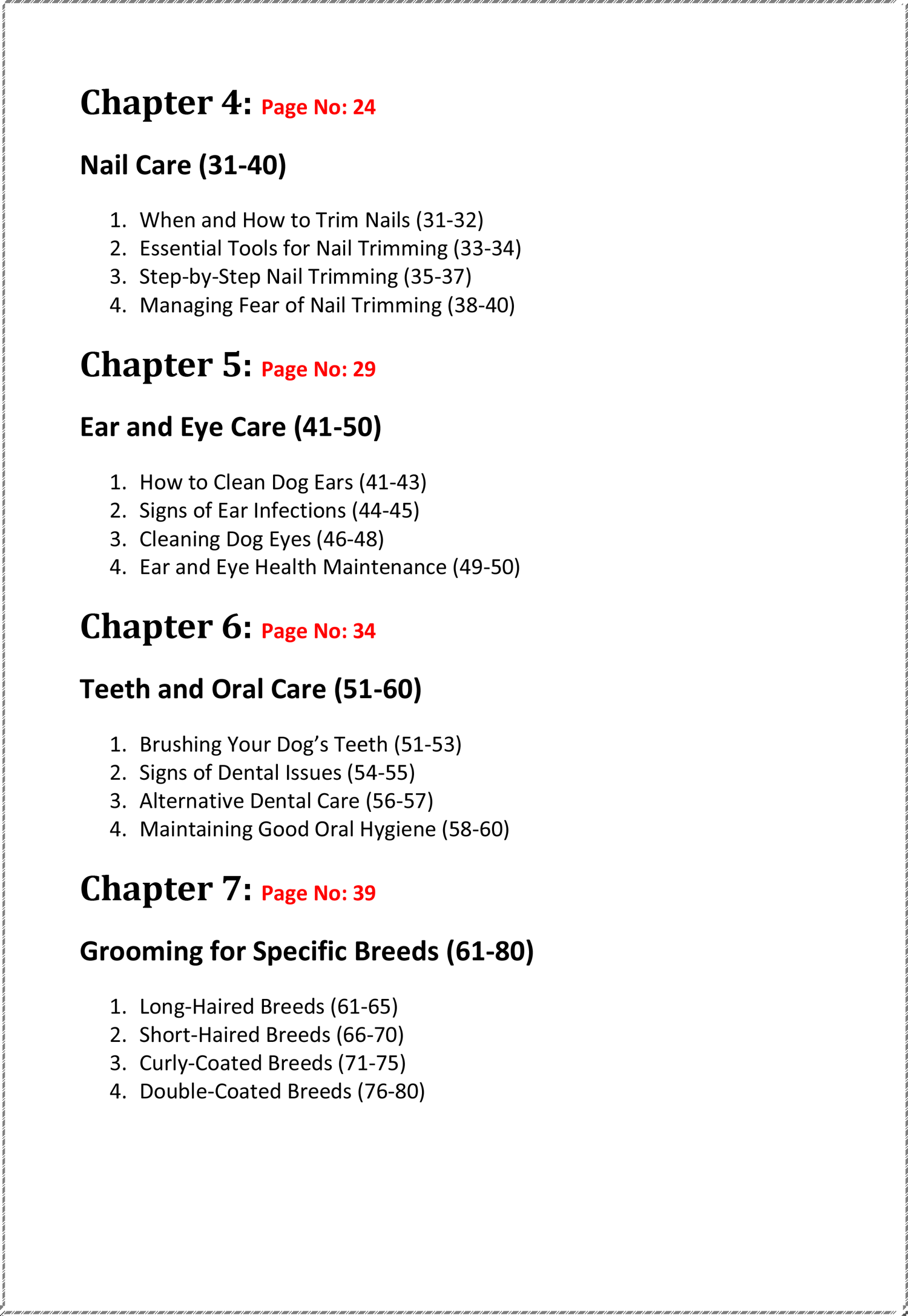 - Insights into dental, ear, and eye care, ensuring your dog’s overall health and hygiene.