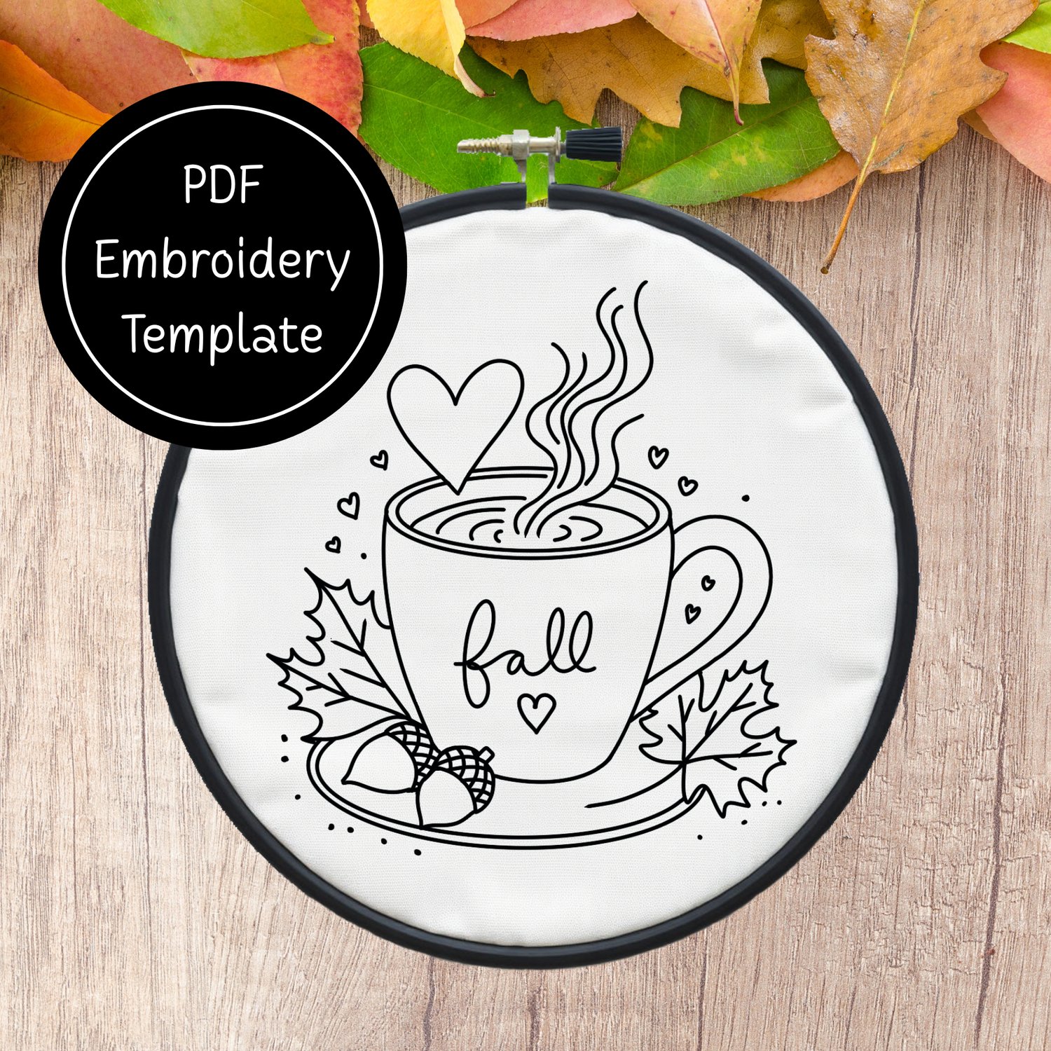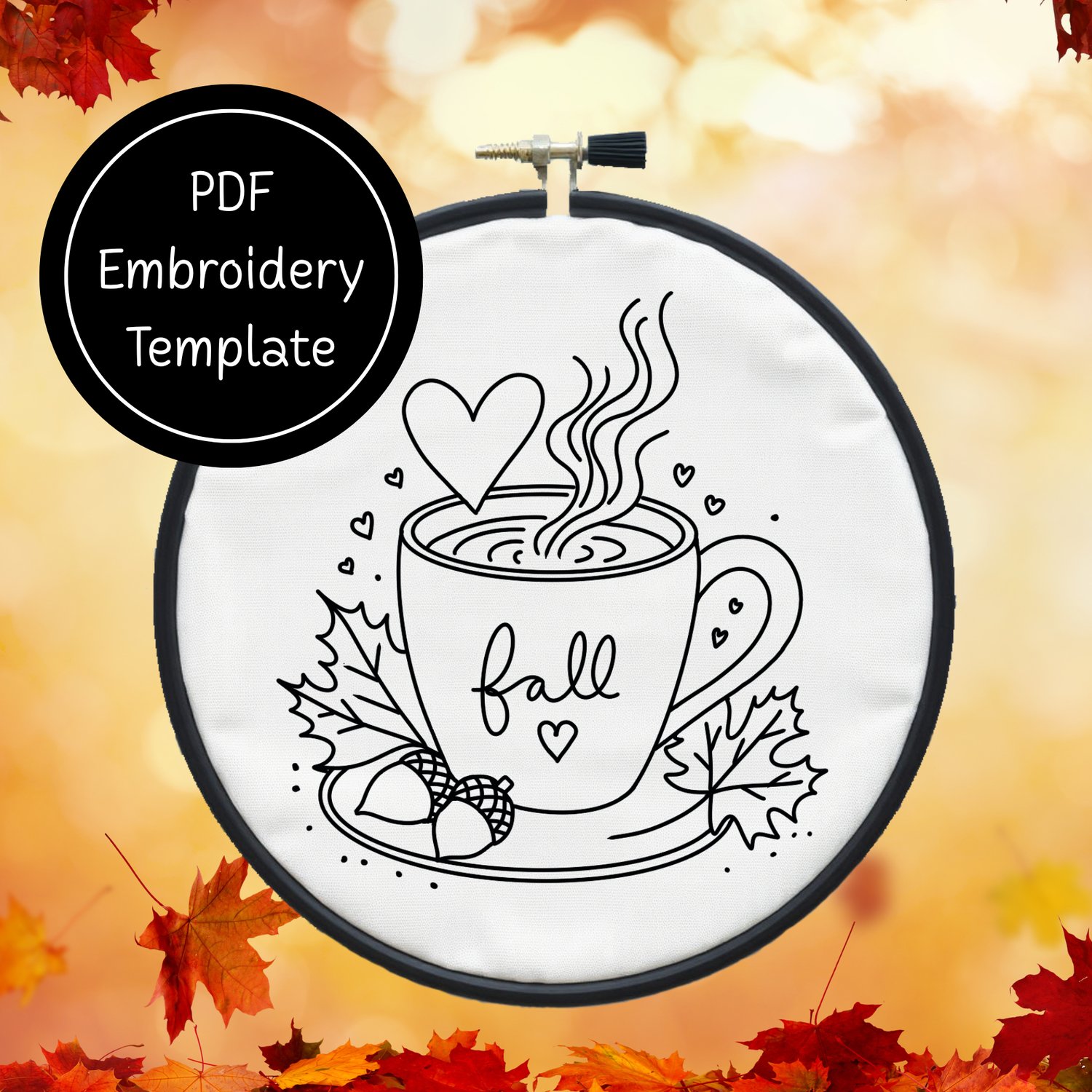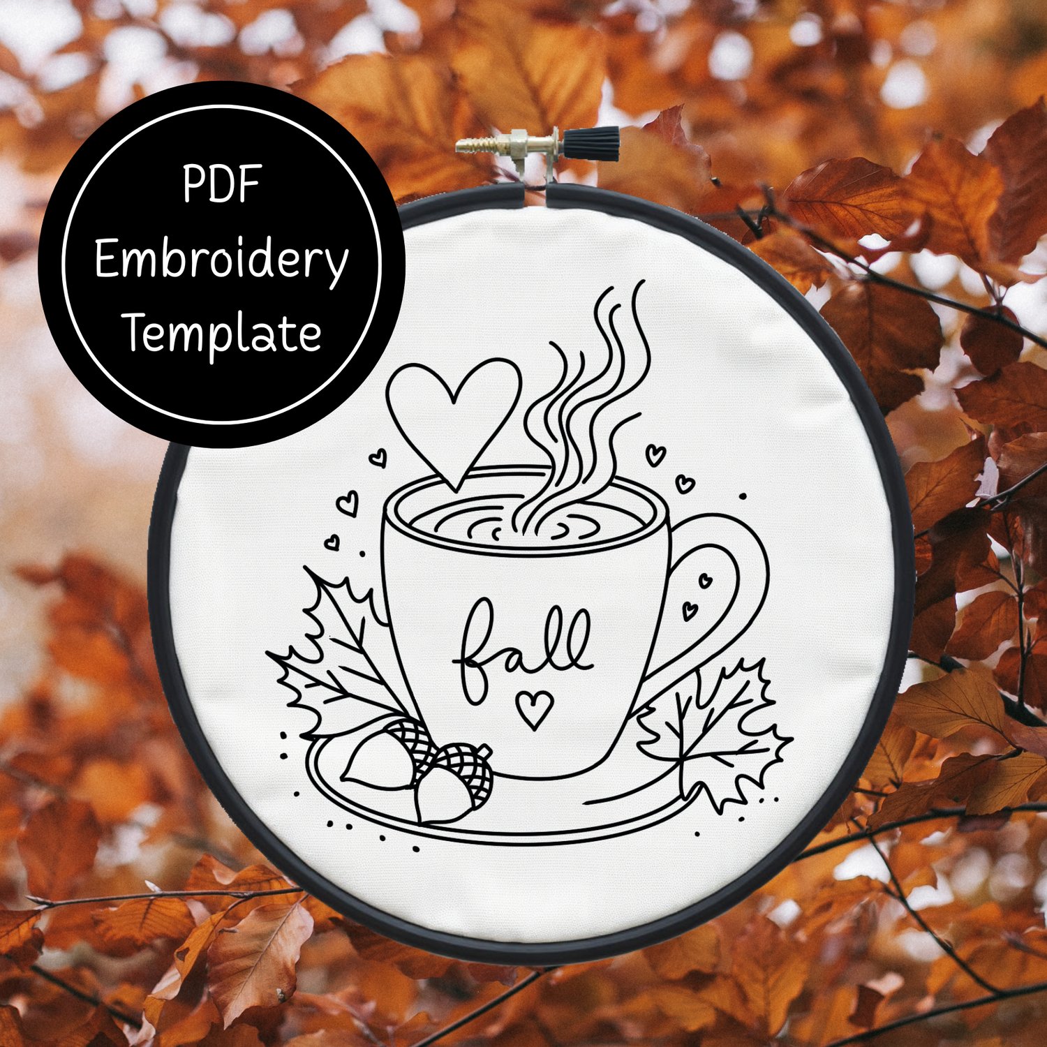 Cup of Fall Hand Embroidery Template PDF - DIY Autumn Design For Hand Stitching - Instant Download