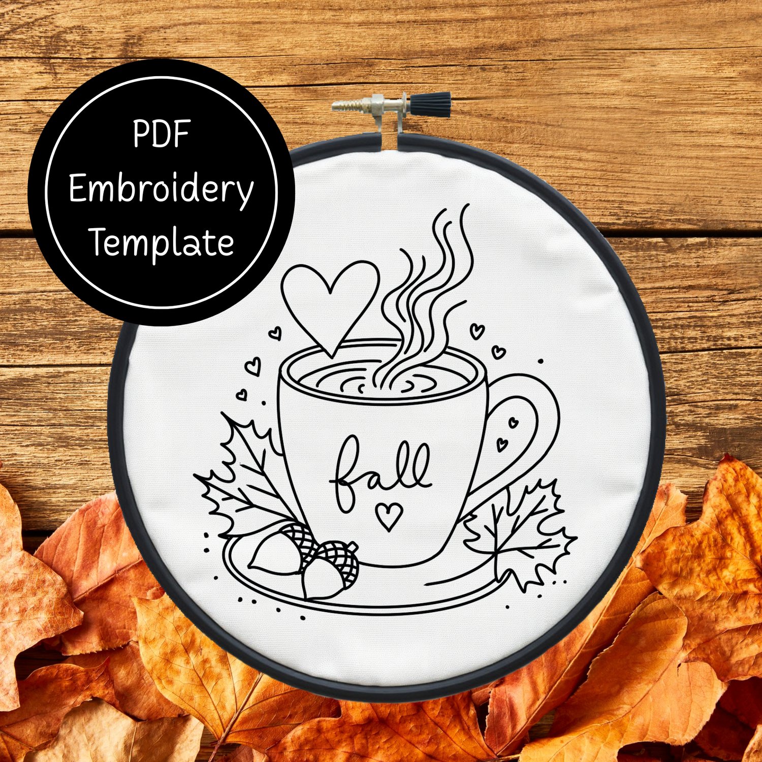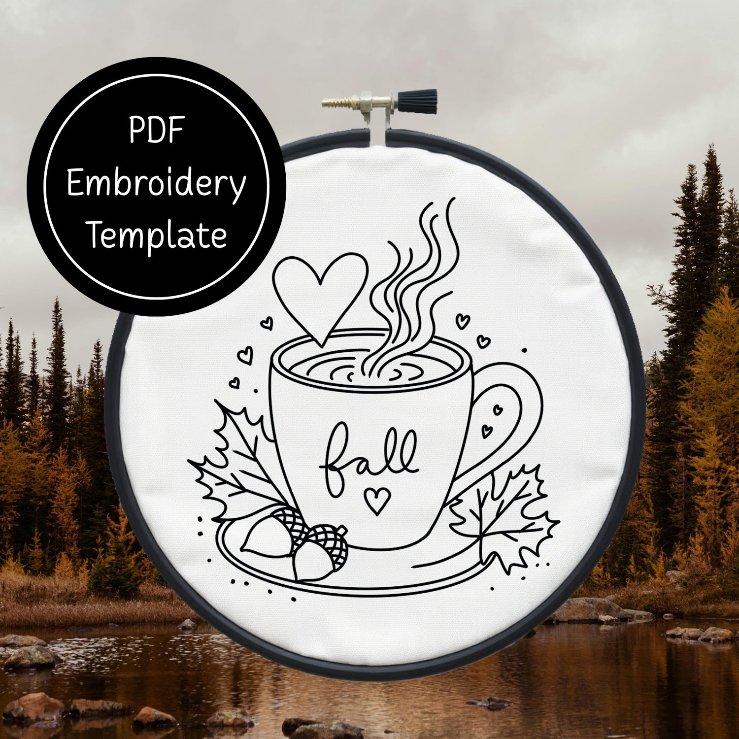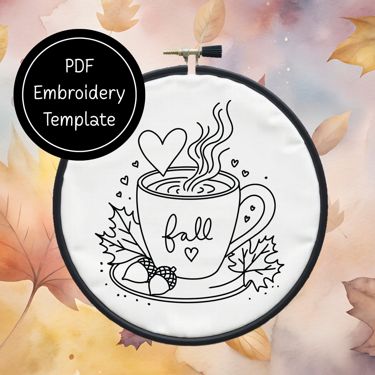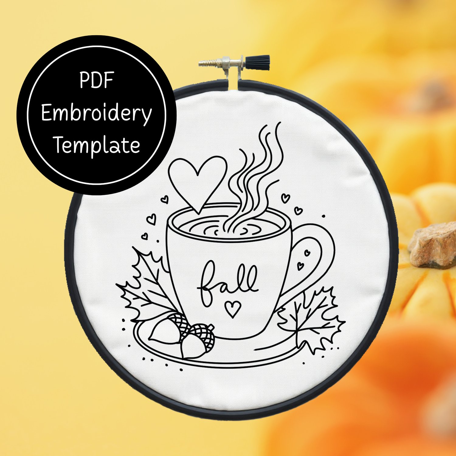 Cup of Fall Hand Embroidery Template PDF - DIY Autumn Design For Hand Stitching - Instant Download