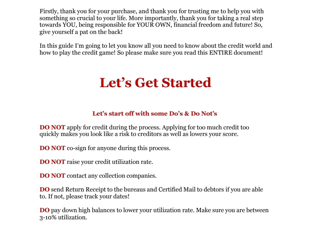 *33 PAGES OF KNOWLEDGE, *TIPS & HACKS TO RAISE CREDIT SCORES QUICKLY, *17 DISPUTE TEMPLATES UTILIZING THE FCRA GUIDELINES