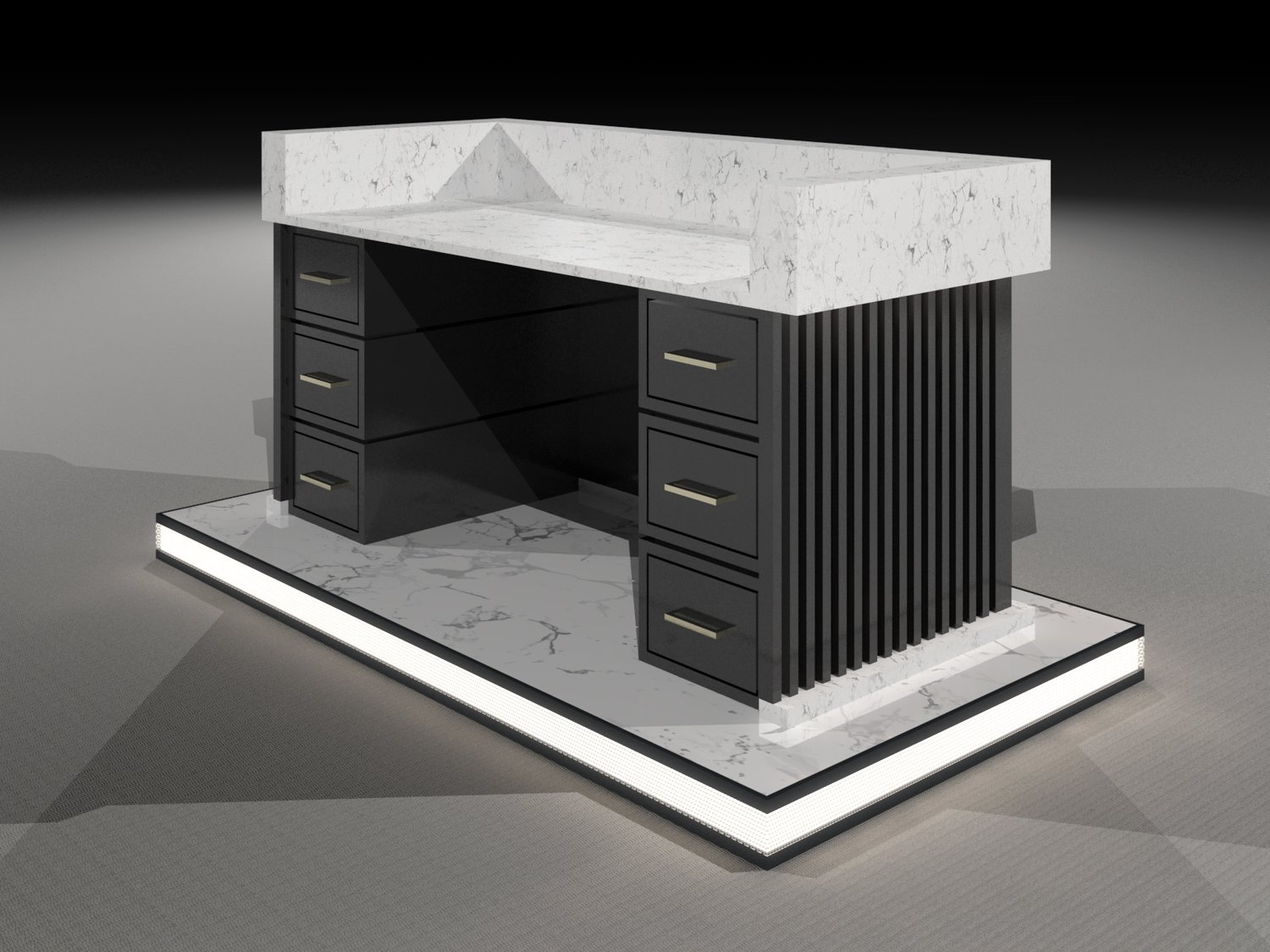 Transform the entrance of any building, whether an embassy, office, or hotel, with our elegantly designed Counter Desk. This premium desk features a blend of rich marble and subtle black accents, ensuring a stunning first impression.