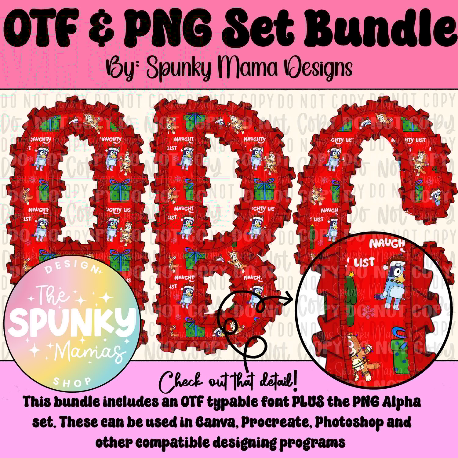 Bluey Naughty List OTF Font and Digital PNG Clipart