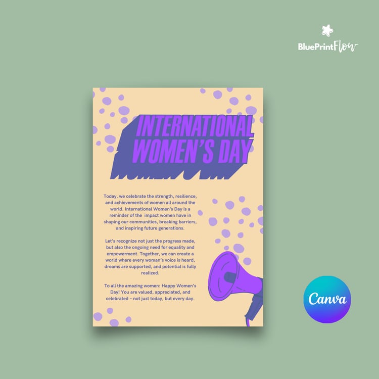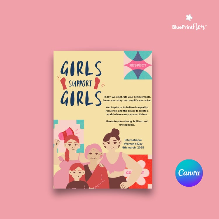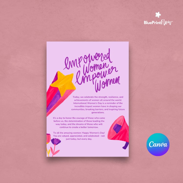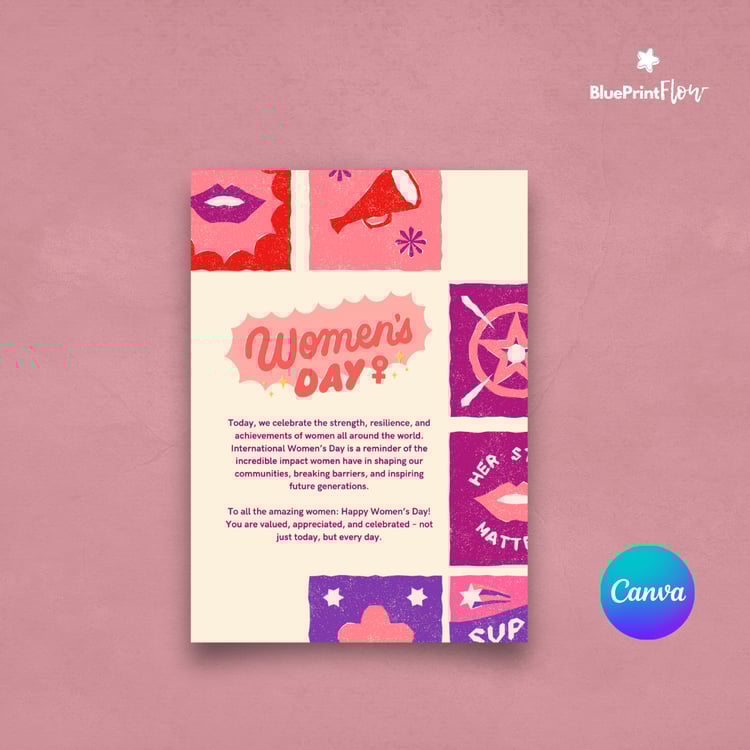 This exclusive bundle brings together a carefully curated collection of 35+ editable and printable templates—from flyers and postcards to greeting cards—designed to help you celebrate International Women’s Day (IWD) and honor the fight for women's rights worldwide. Each design is created on Canva, giving you the flexibility to edit colors, text and layouts to make it truly your own.