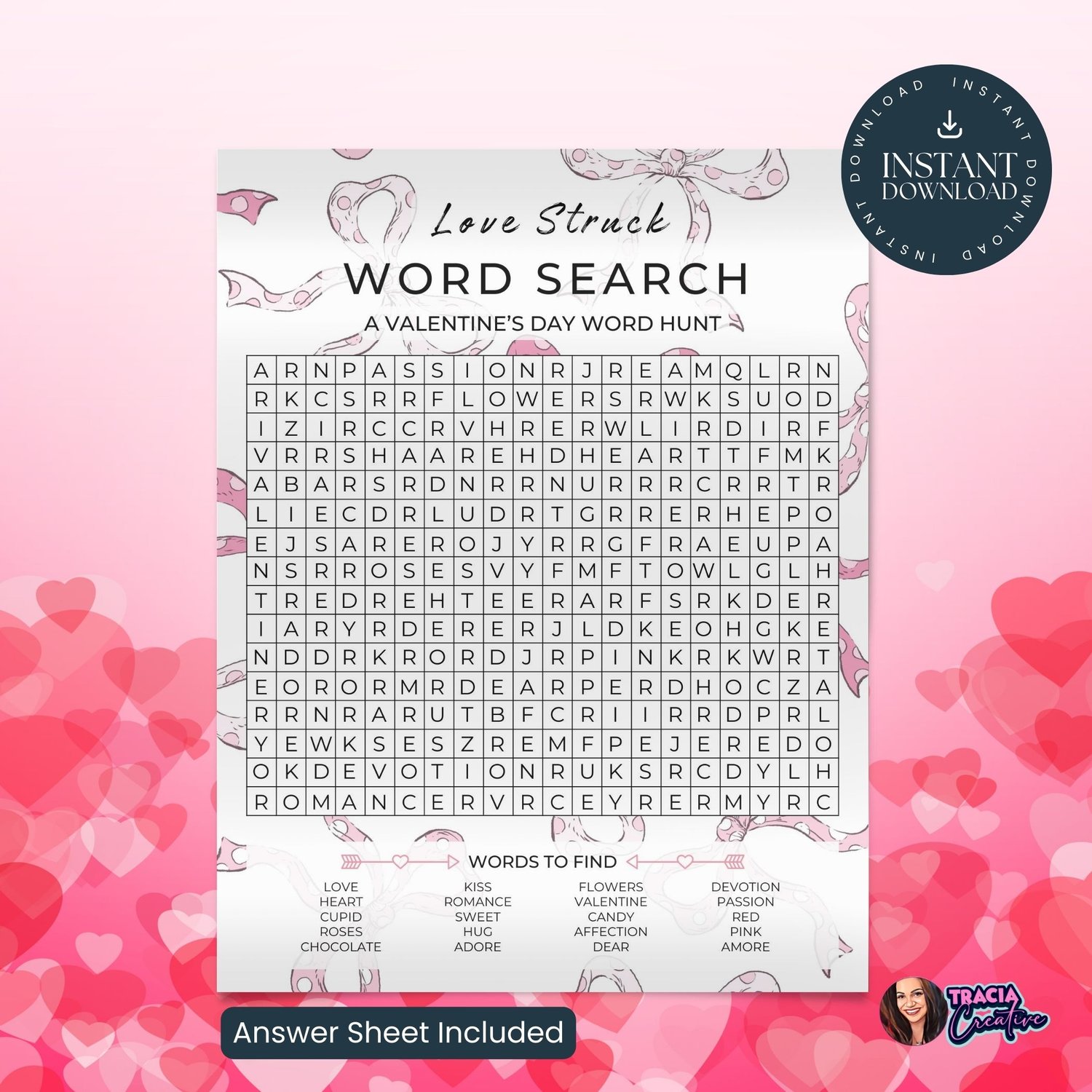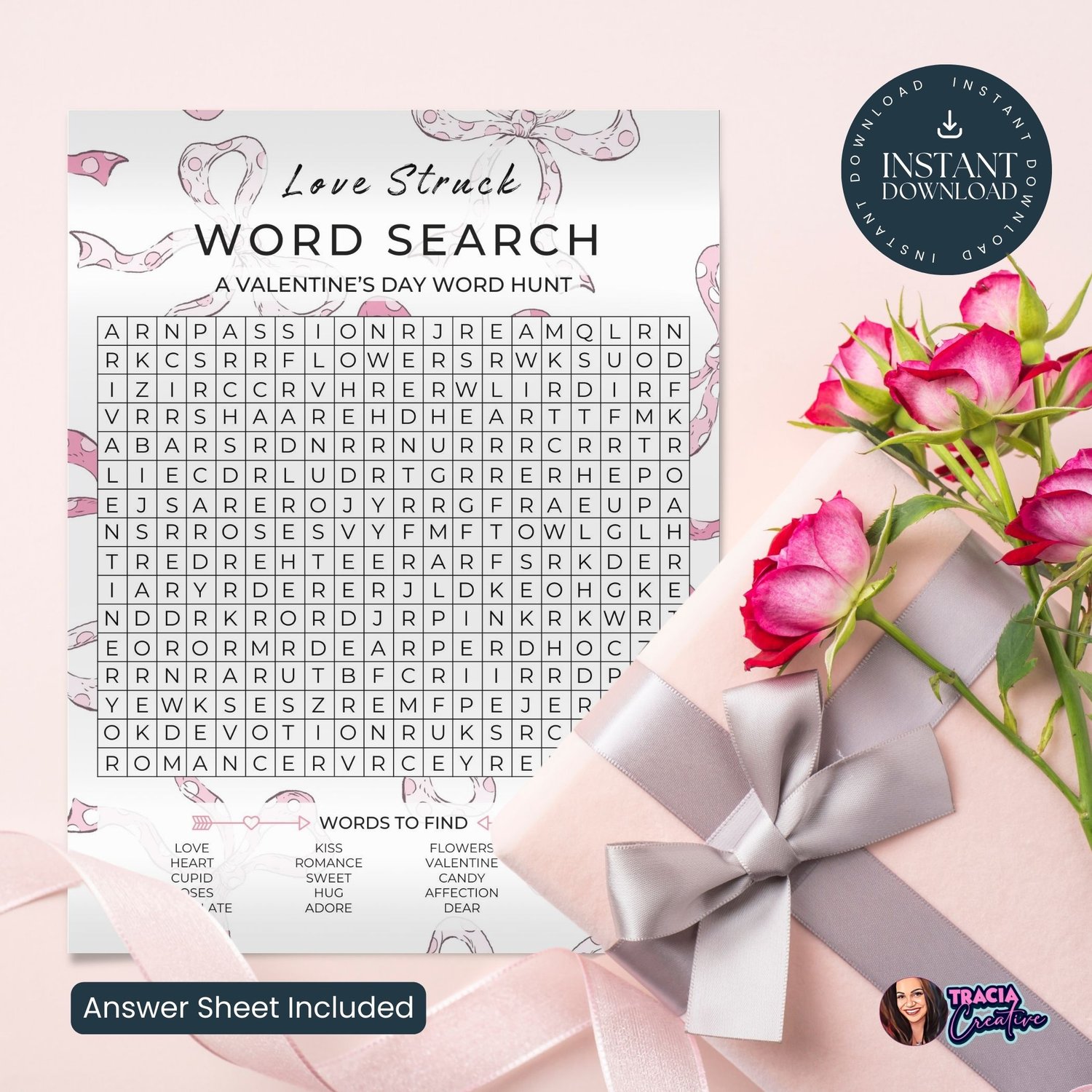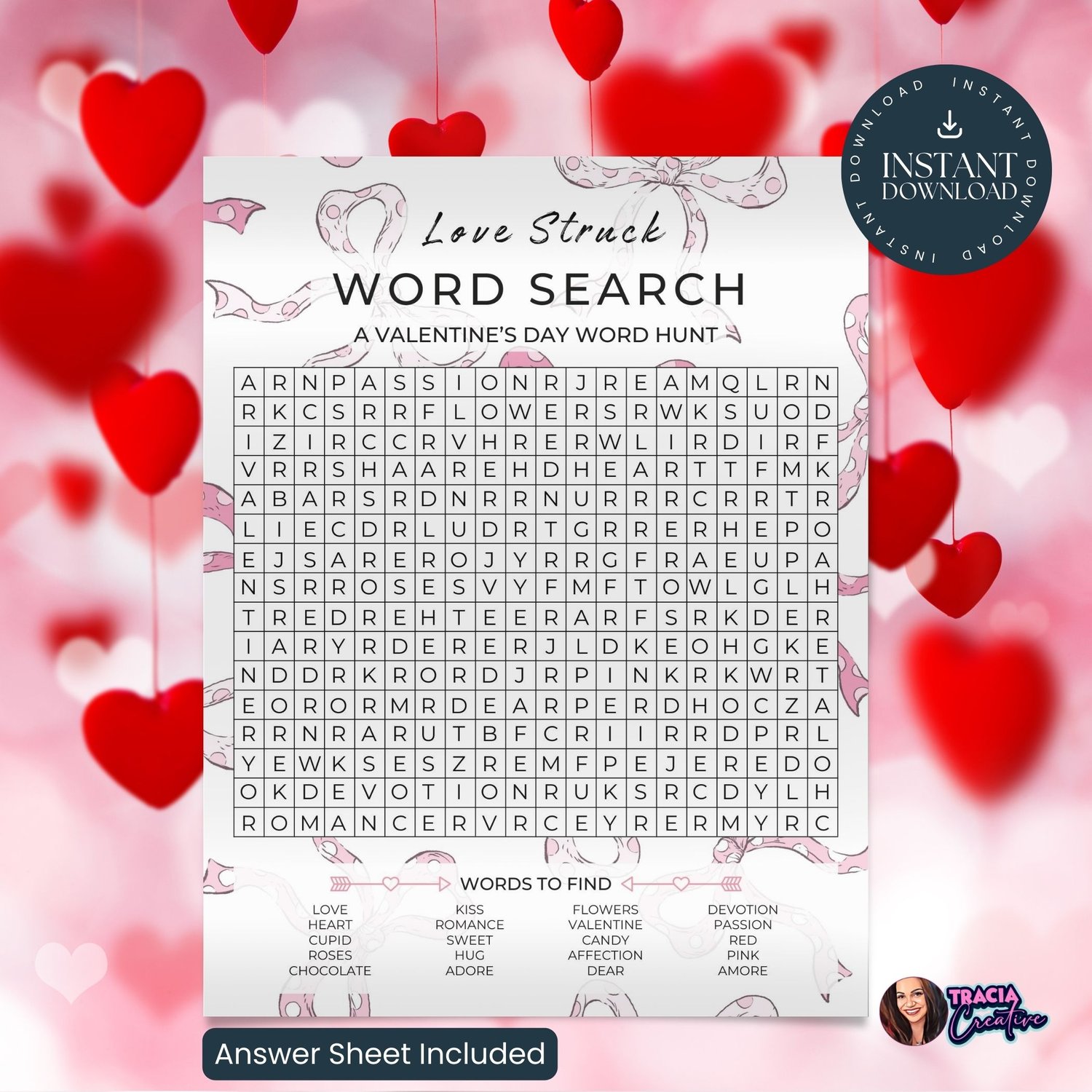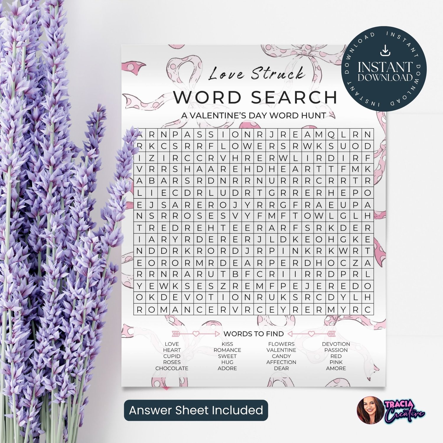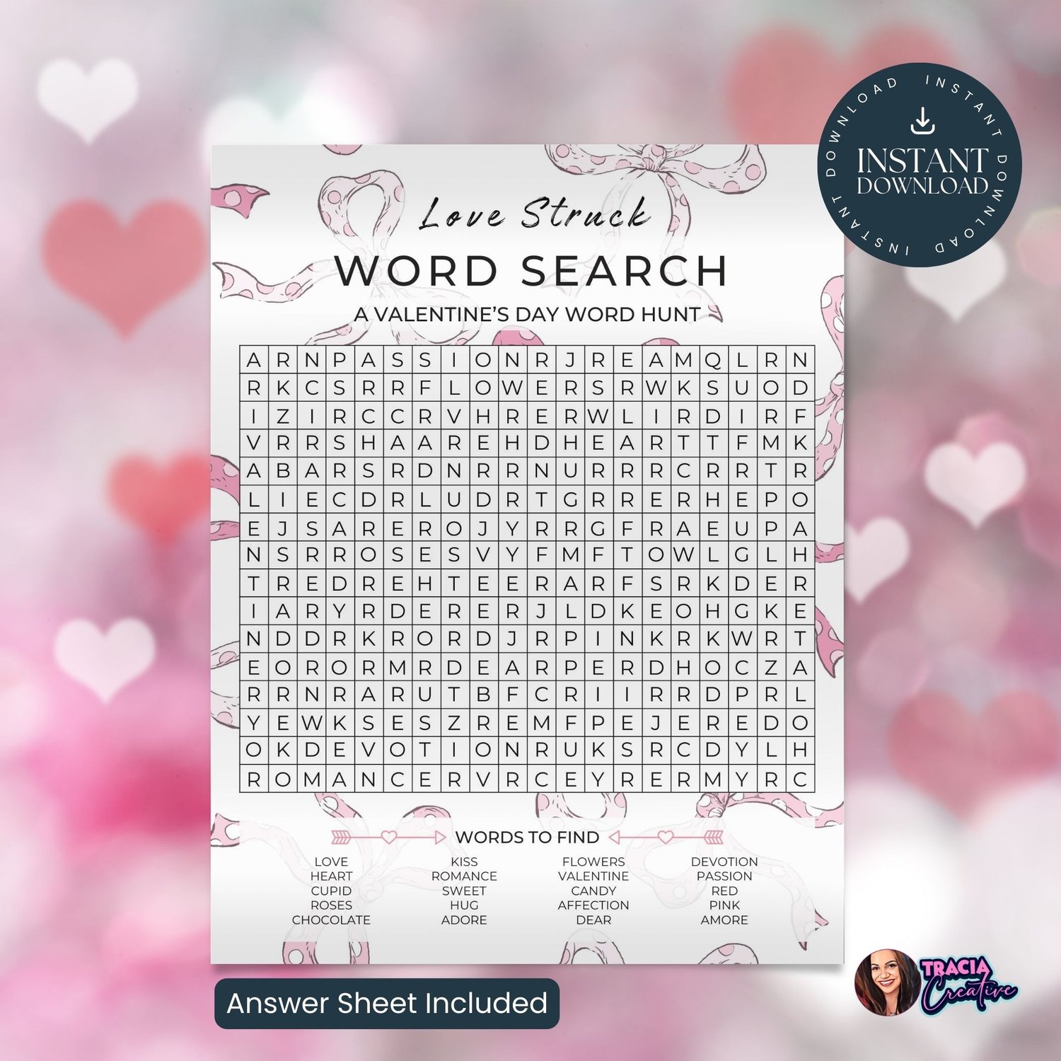 Love Struck Word Search – A Valentine’s Day Word Hunt (8x10 with Answer Sheet)