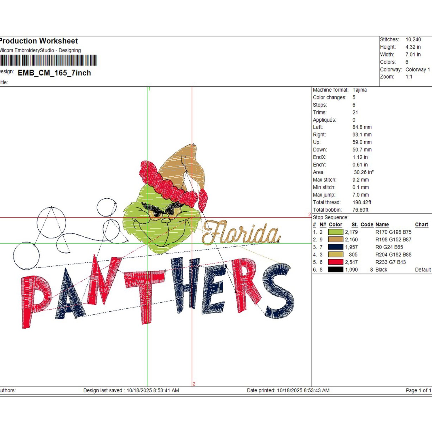 Christmas Grinch x Florida Panthers NHL Team Embroidery Designs, Grinch Embroidery Files, NHL Panthers Hockey Team Logo Embroidery, Merry Christmas Machine Embroidery Design, Digital Download