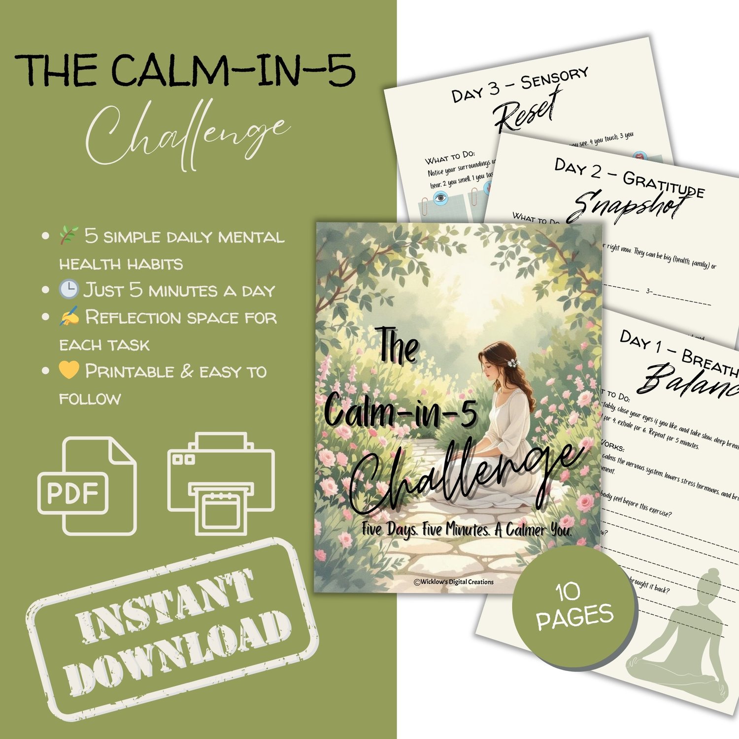 📄 5 daily Calm-in-5 challenge pages — one action per day