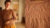 This round-yoke pullover is knit top-down in the round. The lower yoke, body, and most of the sleeves are worked in a waffle pattern on the wrong side of the fabric. The design combines a variety of textured patterns, including half-twisted rib, cables, and garter stitch.