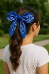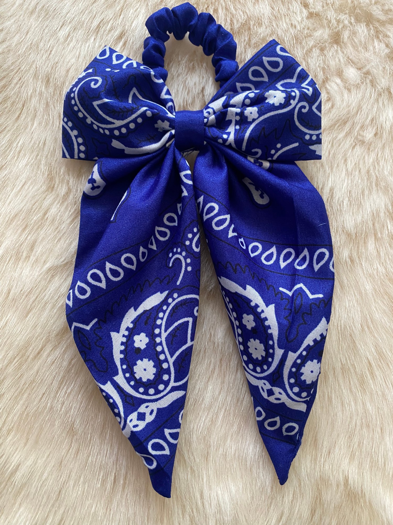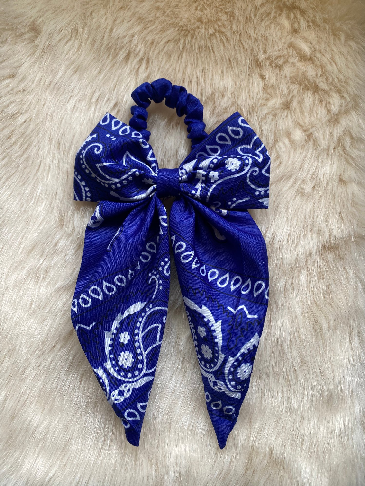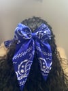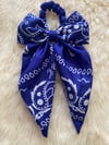 Large Blue Bandana Hair Bow Scrunchie Hair Tie