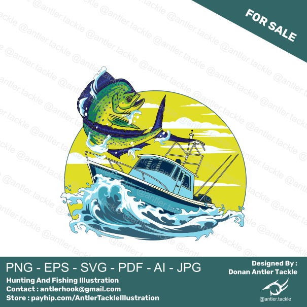 Mahi Mahi Dorado Fish Boat Fishing logo Exclusive License Designed By Donan Antler Tackle