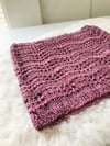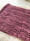 This cowl provides a fun, easy, and wearable project to relax into. Filled with fun lace, rest rows and a ribbed border, it’s suitable for a confident beginner but engaging enough for a more advanced one. It’s a quick project available in one size.