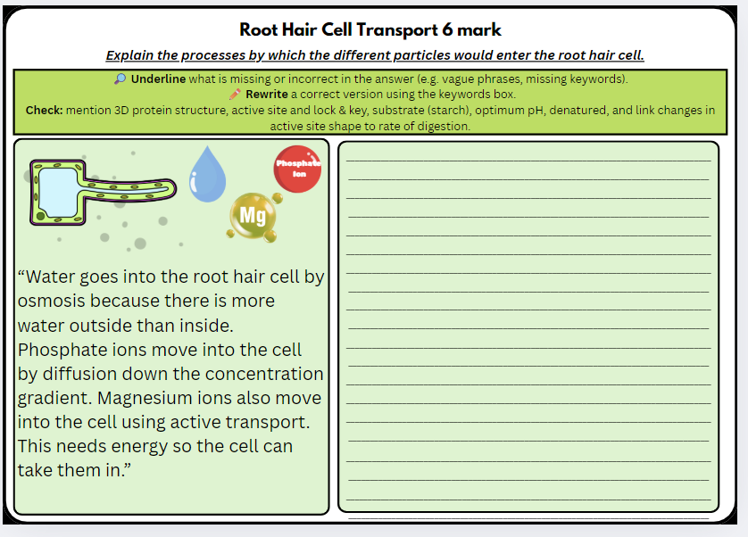 GCSE Root Hair Cell Transport – 6 MarkQ | Scaffolded/Differentiated (Osmosis,Diffusion & ActiveTransport)