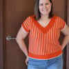 Orange top sample is knit with Bombed Yarns Dynamite 4ply (100% SW Merino, 400 m / 437 yds – 100 g) in colours Marmalade (MC), and eggshell (CC1 and CC2).