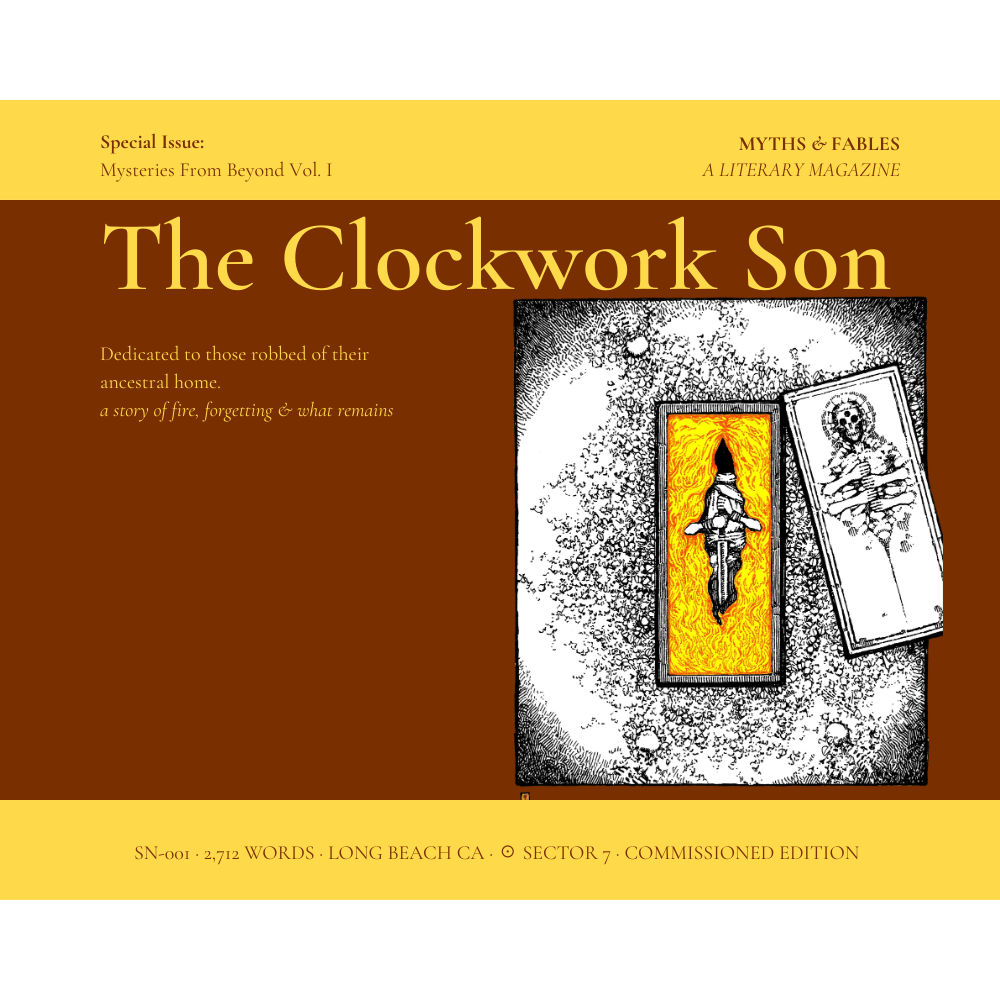 The Clockwork Son is a speculative fable about identity, colonial erasure, and the cost of belonging — told through the perspective of a mechanical being who must choose between the self that was built for him and the one buried beneath.