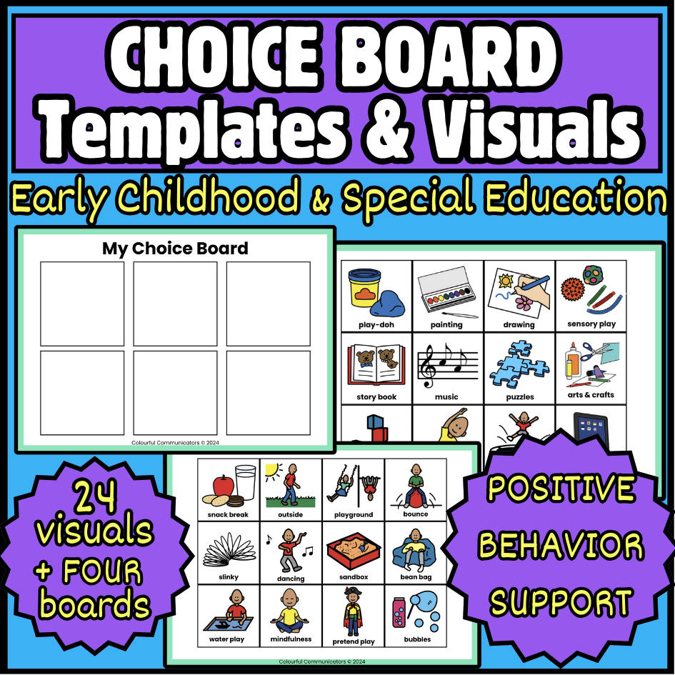 - 4 x Choice Boards (to encourage independent choice making).