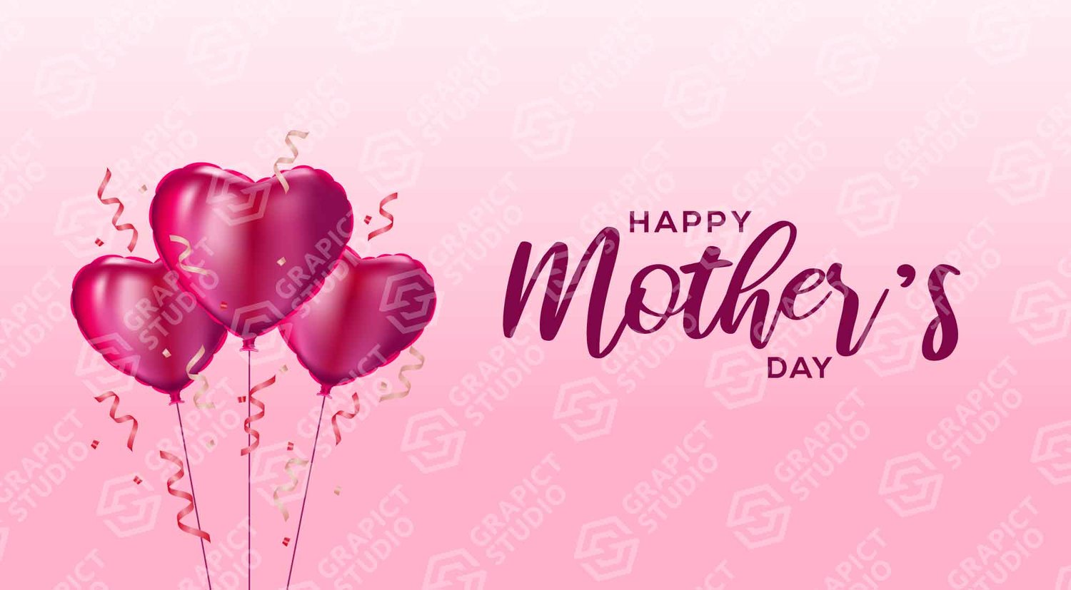 Red Balloons illustration with confetti, Mother's Day celebration banner design.