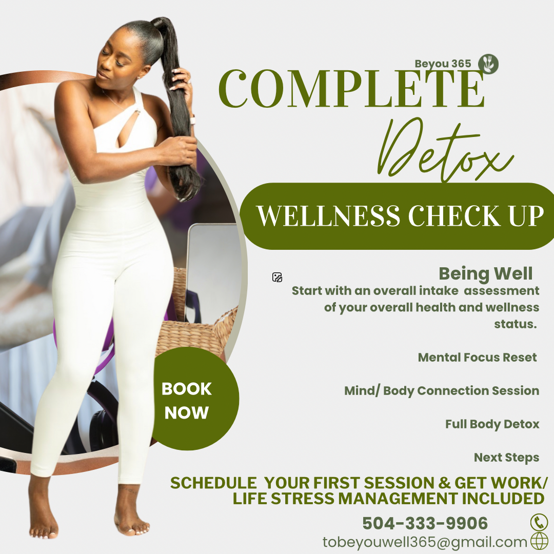 Thank you so much for getting a Wellness Check Up. Wellness is the key to your overall function and quality of life. It includes your mental and physical wellbeing. Your Wellness check will include a total reset that aligns with your needs.