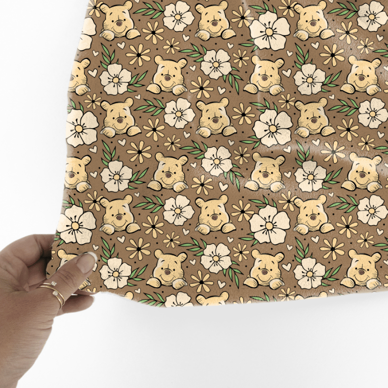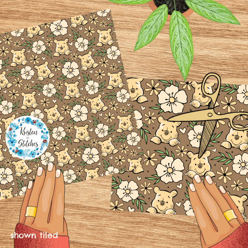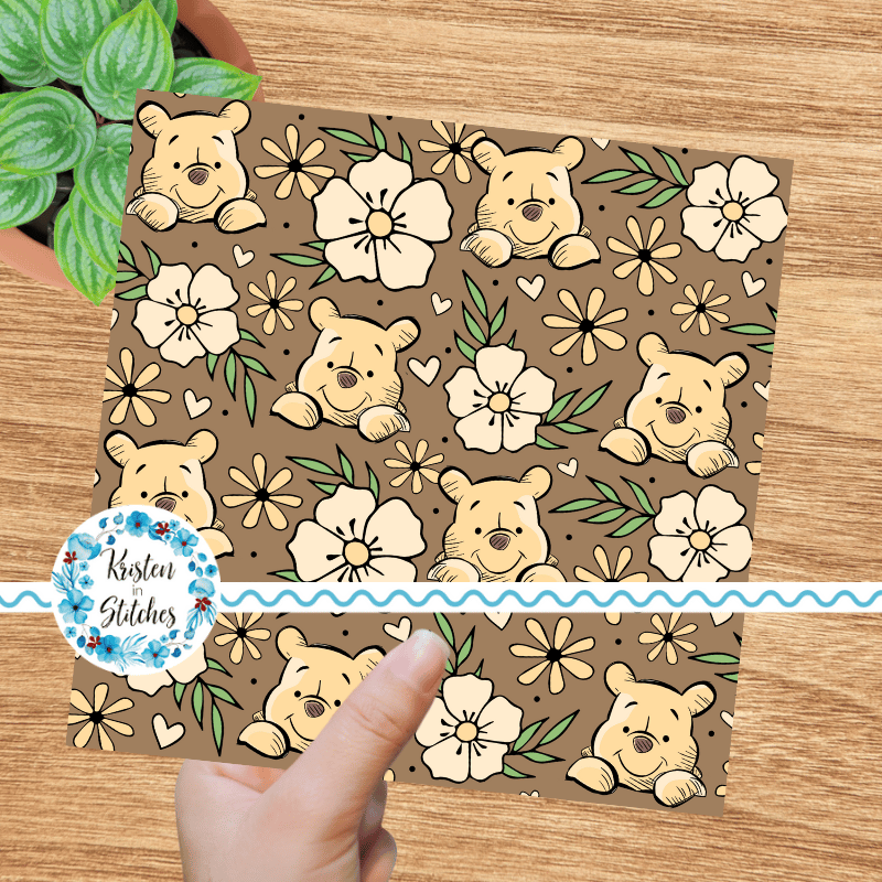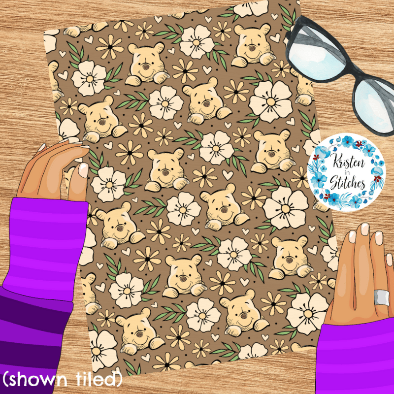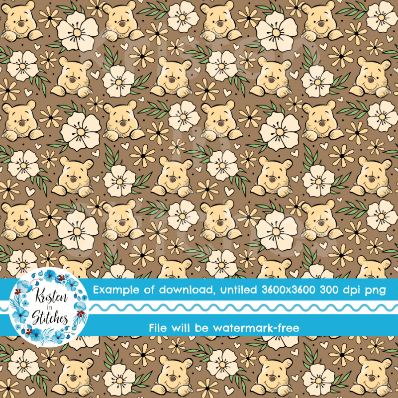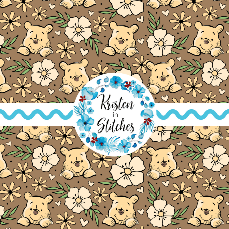 Pooh Bear Floral Seamless Pattern, Classic Winnie the Pooh Nursery, Brown
