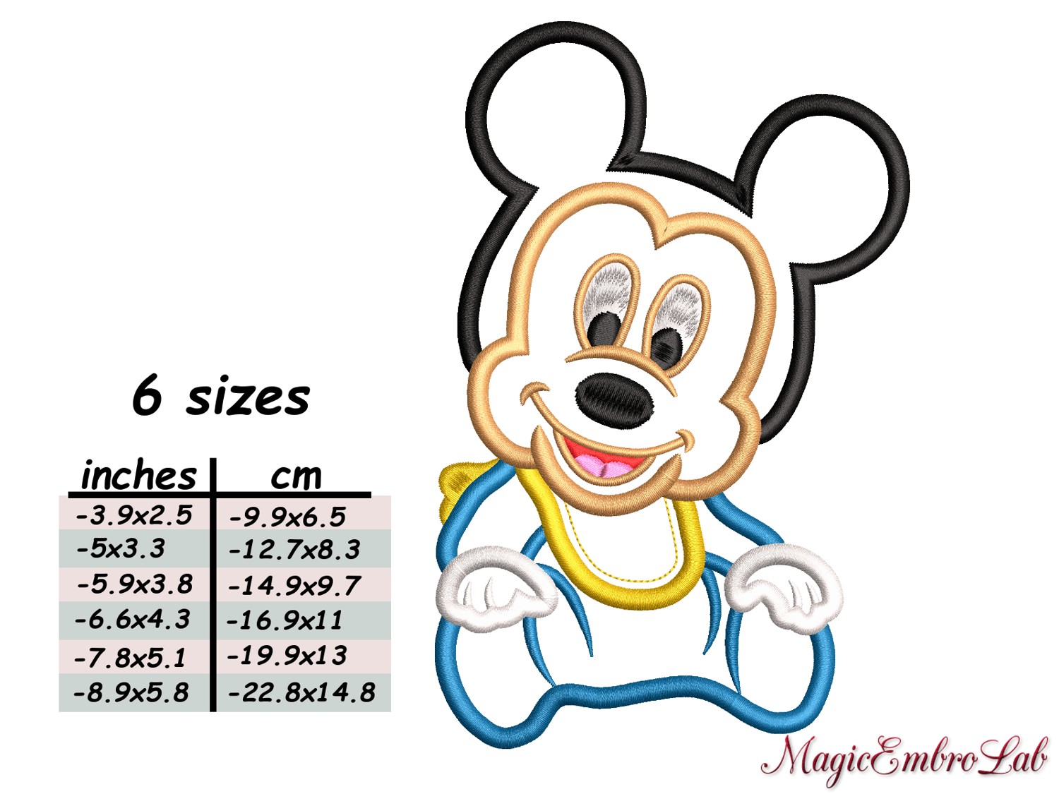 Mickey Baby APPLIQUE, 6 sizes, Instant Download