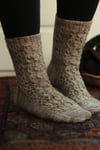 Blendon Woods Socks feature allover cables for a classic yet special design. A winding cable panel takes center stage, with allover honeycomb texture wrapping around the rest of the sock. There are four sizes so you can find your best fit - but make sure to size up from your typical stockinette sock stitch count since cables aren’t as stretchy. Show off your cabling expertise by letting these socks peek out of the top of ankle boots!