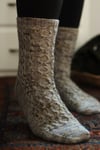 This pattern assumes knowledge of working in the round, basic cables, and basic sock construction. Both charts and written directions are provided for all stitch patterns.