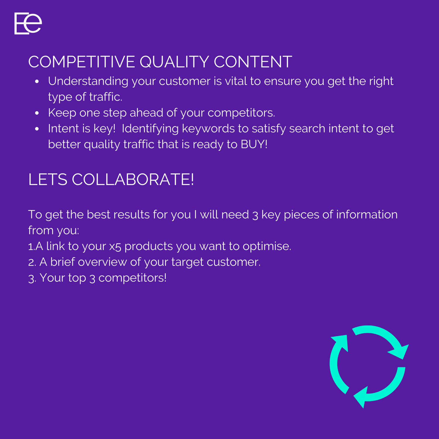 So you've got an amazing product and taken the time to curate an amazing product description, but it is not getting in front of your target audience. You have thought about doing keyword research but have absolutely no idea where to start - which words to target for your product and why? At Elevate Ecom, we do that for you at an affordable price!