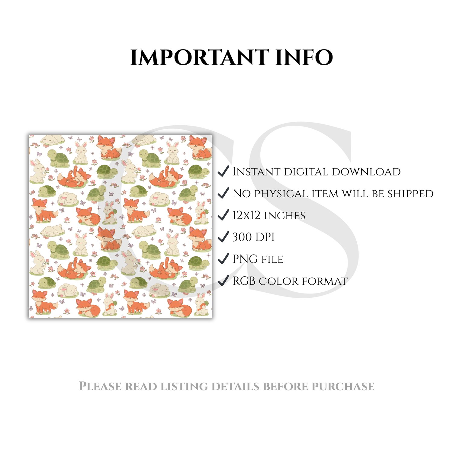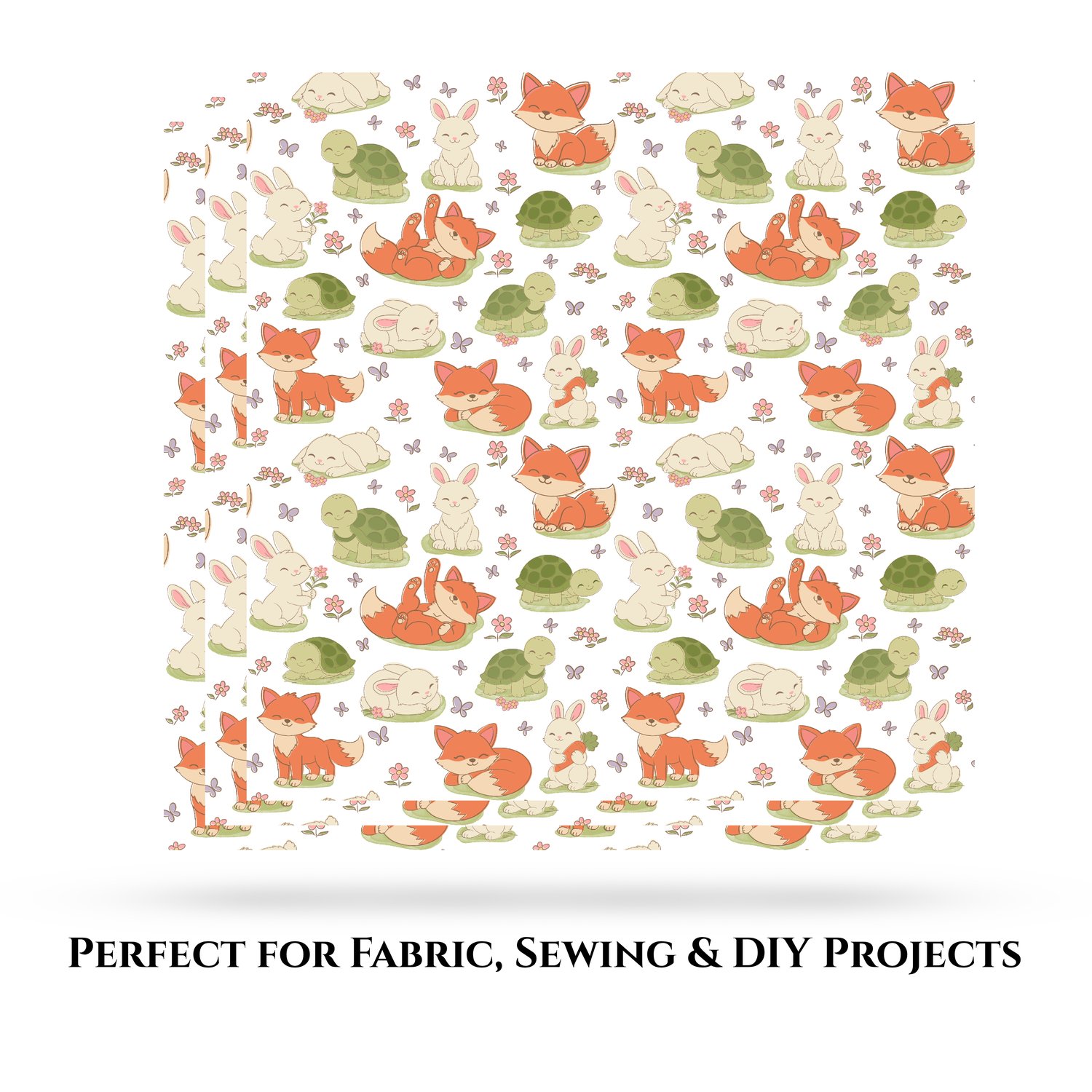 Woodland Animal Seamless Pattern 12x12, Fox Bunny Turtle Pattern, Nursery Animal Digital Paper, Storybook Garden Fabric Design